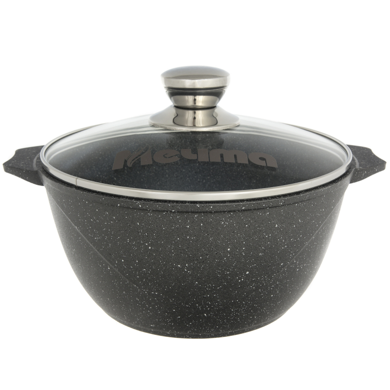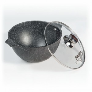 Казан для плова 6л. со стеклянной крышкой. Сверхпрочное антипригарное покрытие Greblon на водной основе без PFOA. Толщина покрытия до 55 микрон. Ресурс более 12 000 циклов. Серия "Гранит". Толщина дна... Показать описание 5,5-6мм., толщина стенок 3,6-4мм. Покрытие Greblon позволяет готовить с минимальным количеством масла, сохраняя вкусовые и полезные свойства продуктов. Литой толстостенный корпус не подвержен деформации, а утолщенное дно равномерно распределяет тепло по всей поверхности. Для газовых, стеклокерамических и электрических плит