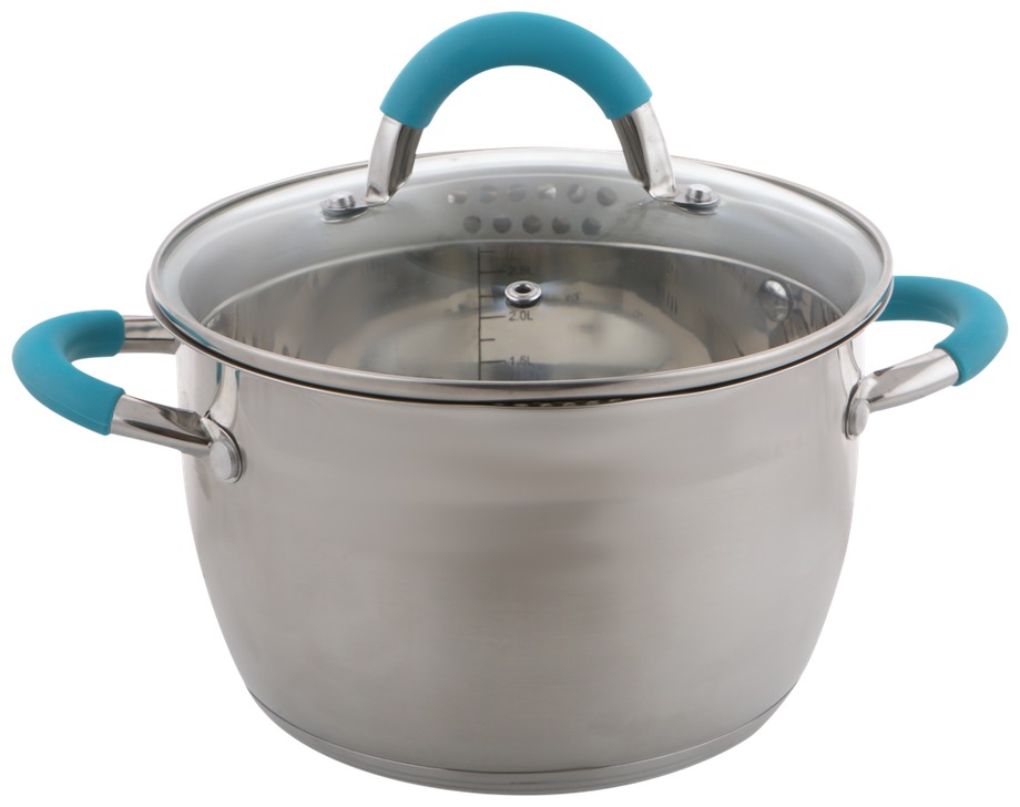 Кастрюля с крышкой 2,8 л (размеры: 20*9,5 см) Размер: 20*9,5 см Одинарное дно - нерж сталь, толщина 0,3 мм Крышка из жаропрочного стекла с отверстием для выпуска пара ручки бакелит Толщина стенок - 0,... Показать описание3 мм Толщина дна 0,3 мм Высота стенок - 9,8 см Материалы: сталь, стекло, бакелит Упаковка: стикер+термоусадочная пленка. Метод производства - штамповка/тип крепления ручек точечная сварка. Не рекомендуется мыть в посудомоечной машине. Подходит для всех типов плит.