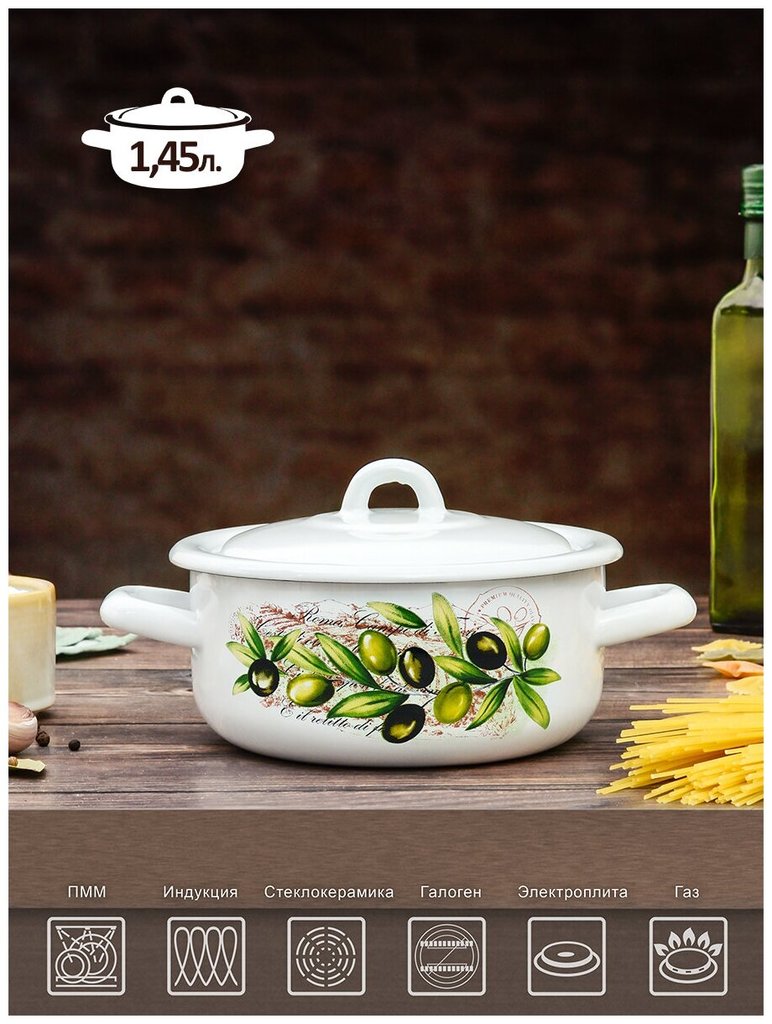 Кастрюля эмаль Оливы Тосканы 1,45 л, цилиндрическая ЭТ-72117 Эстет Вопросы по товару