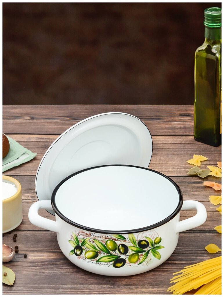 Кастрюля эмаль Оливы Тосканы 1,45 л, цилиндрическая ЭТ-72117 Эстет
