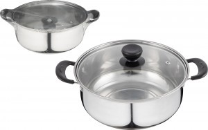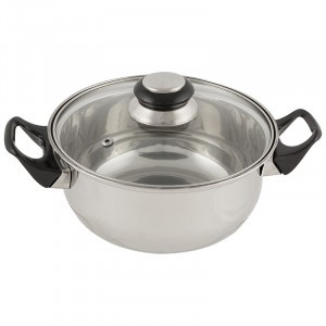 Кастрюля Promo, объем 2,2 л, из нержавеющей стали с крышкой из жаропрочного стекла Материал: нерж сталь, жаропрочное стекло, нейлон толщина стенок 0,3 мм, объем 2,2 л. Размер: 21,5 (диаметр)*8,5 (высо... Показать описаниета без крышки) см. Размер с ручками: 28 см. Высота с крышкой: 12,4 см. Дно однослойное. Подходит для всех типов плит. Не рекомендуется мыть в посудомоечной машине. Зеркальная полировка корпуса внутри и снаружи. Отметки литража. Крышка из жаропрочного стекла С-типа с отверстием для выпуска пара. Ручки: нерж сталь+ нейлон. Упаковка: стикер+термоусадочная пленка.