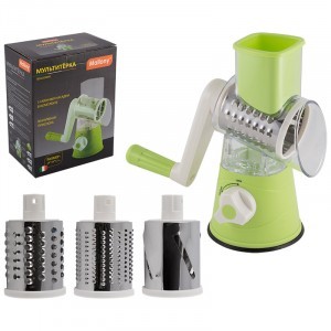 Мультитерка похожа на обычную мясорубку, но таковой не является. При помощи этого незаменимого прибора можно нарезать овощи для салата. Их идеально ровная форма поразит гостей. Вакуумная присоска в ос... Показать описаниеновании надежно фиксирует терку на рабочей поверхности. С помощью мультитерки можно: - шинковать капусту для салата, делать тонкие пластины из картофеля или яблок для чипсов - натирать шоколад и орехи, готовить панировку - нарезать овощи ломтиками В комплект входят: - корпус мультитерки - 3 насадки (7*7*11 см) - толкатель Размер: 24*26*11 см Материал: ABS пластмасса, полистирол, нержавеющая сталь (430)