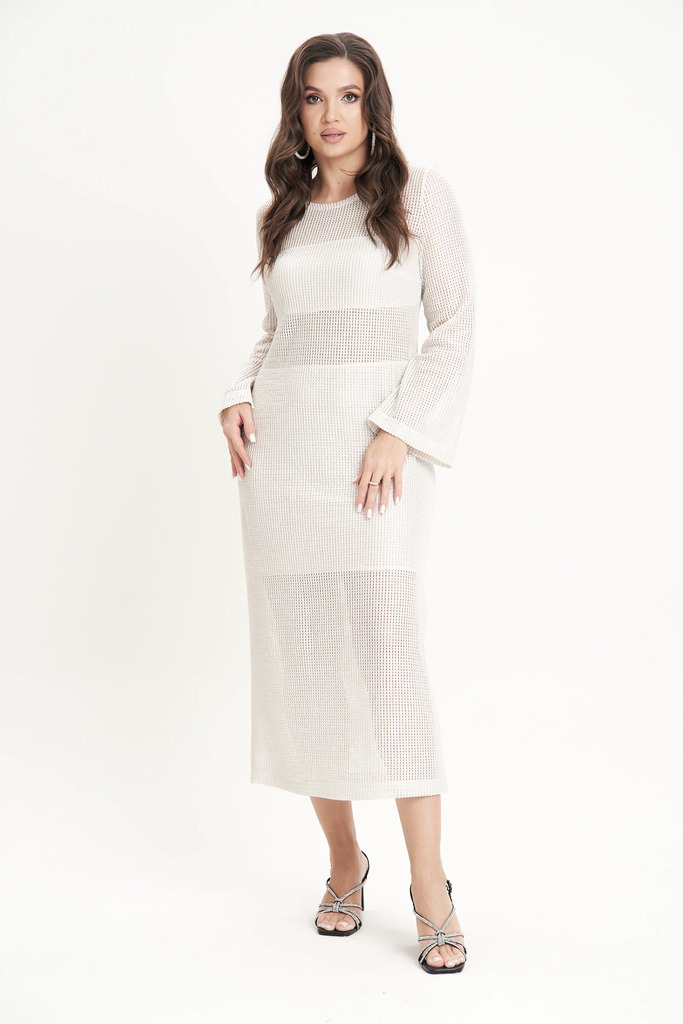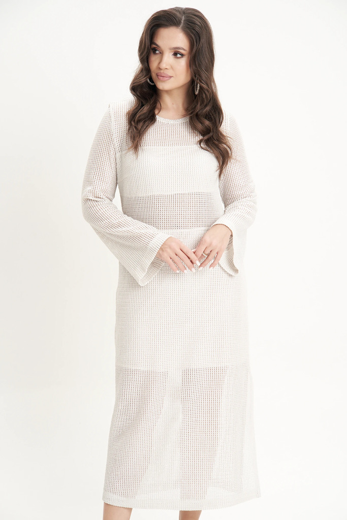 Платье из сетки сегодня стало одним из самых популярных в мире моды. Выполнено из трикотажной фактурной сетки с металлическим напылением - такое платье станет отличной альтернативой вязанным и кружевн... Показать описаниеым нарядам - лёгкое, струящееся, соблазнительное. Свободный, упрямлённый силуэт, втачной покрой, рукав расширенный к низу, круглая горловина и эффектный разрез. хлопок 20%, пэ 80%.
