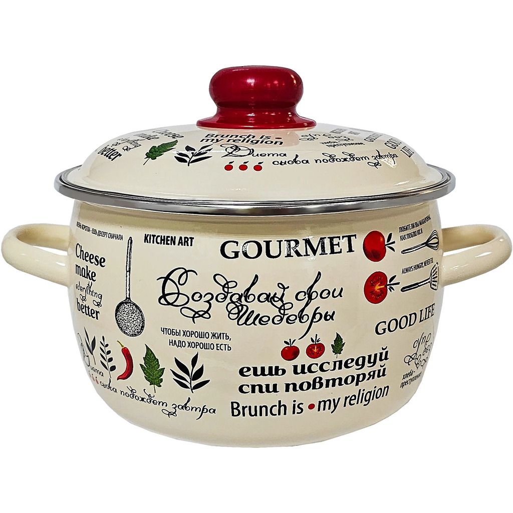 Бренд: Appetite Серия: Шедевры Материал: Эмалированная сталь Страна происхождения: Россия Эмалированная посуда изготовлена из высококачественного стали и покрыта жаропрочной эмалью, которая надежно за... Показать описаниещищает пищу от контакта с металлом. Данное покрытие устойчиво к пищевым кислотам, не вступает во взаимодействие с продуктами и не искажает их вкусовые качества. Эмалированная посуда предназначена для приготовления пищи, хранения пищевых продуктов и других хозяйственных нужд