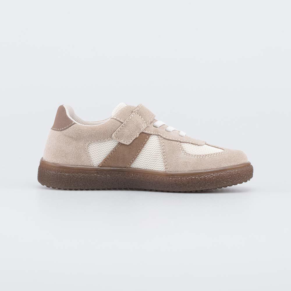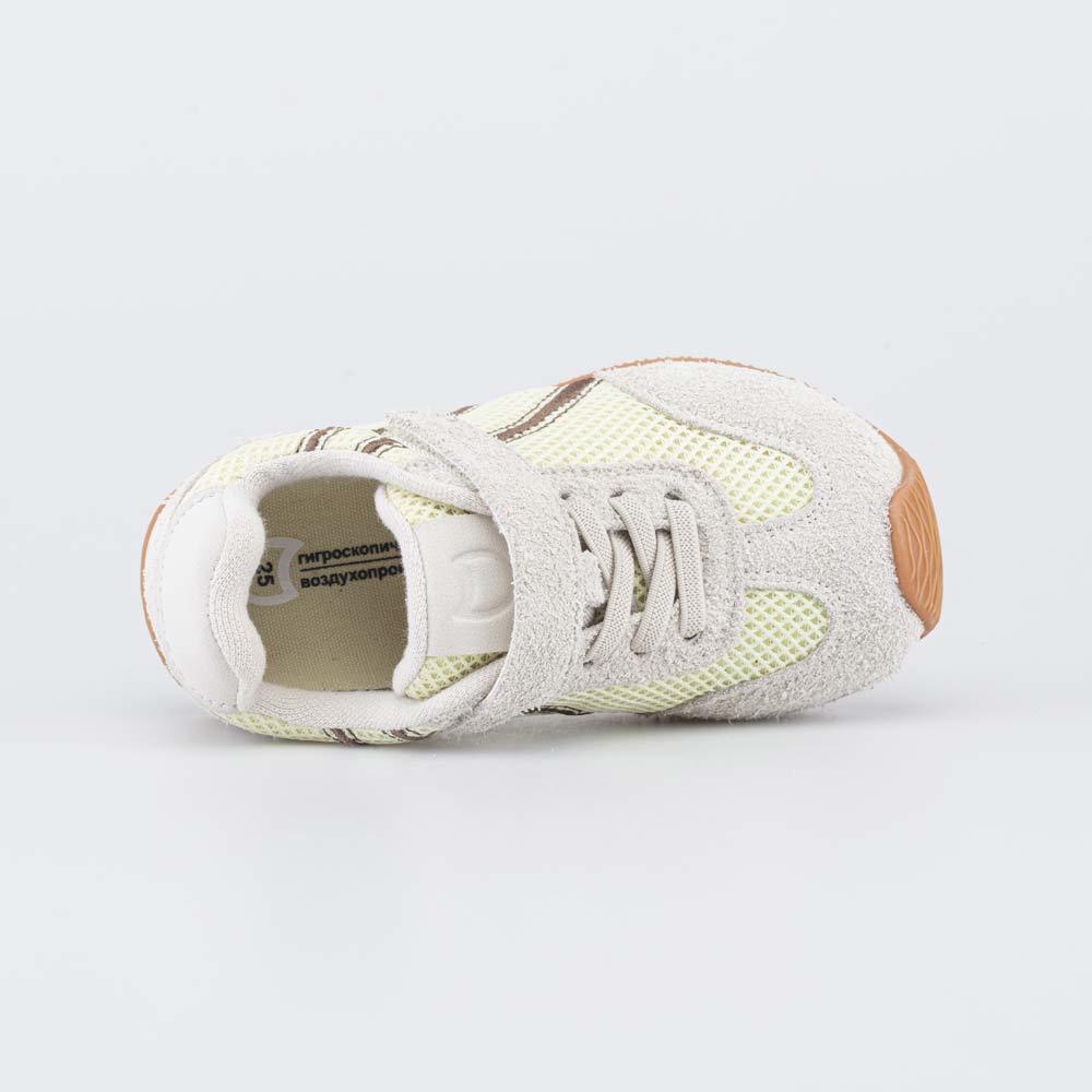 Описание Описание модели Светлые бежевые кроссовки подходят для мальчика, который уже начал активно ходить. Верх выполнен из сочетания вязаного текстиля, обладающего высокой воздухопроницаемостью, и и... Показать описаниескусственной кожи. Внутри подкладка и стелька из натурального хлопка. Они обеспечивают оптимальный микроклимат, позволяют стопам дышать и отводят от них влагу. Липучки-велькро и шнурки-резинки надежно фиксируют обувь на ножках и позволяют быстро обувать и разувать ребенка. Подошва из синтетической резины образует наплыв на носочную и пяточную части, защищая материалы от грязи и повреждений, а ее фактурная поверхность становится элементом дизайна. Модель разработана для детей младшего возраста, поэтому большое внимание уделено ее анатомическим свойствам. Для поддержания внешнего вида светлой обуви рекомендуем время от времени обрабатывать ее специальными средствами и чистить мягкой щеточкой.