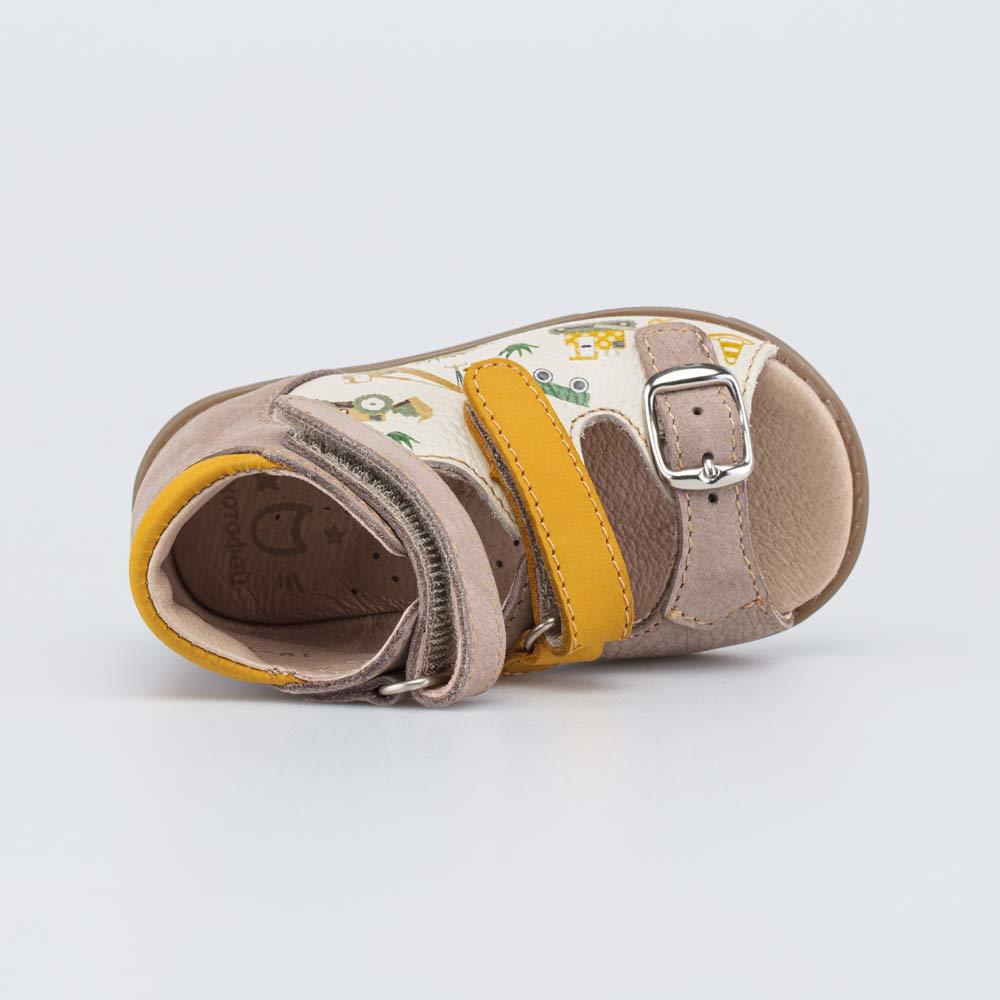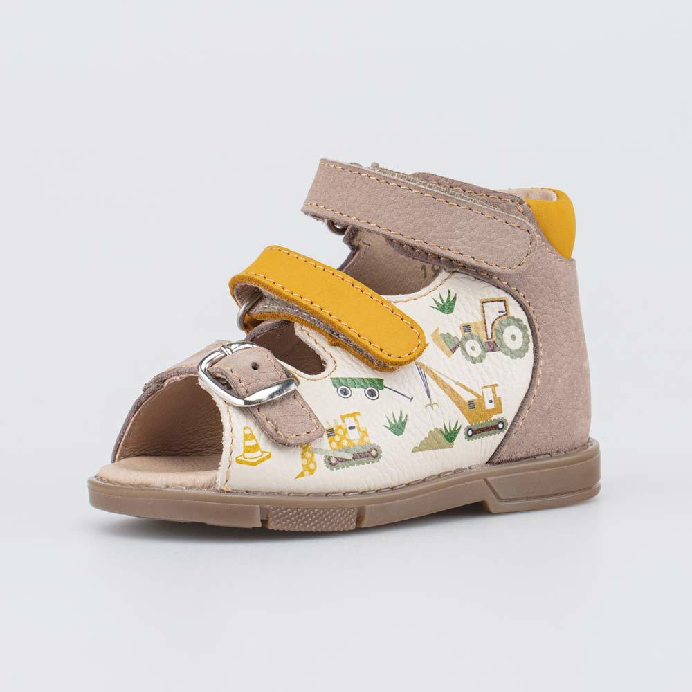 Описание Описание модели Детские летние сандалии Котофей с открытым носом из серии Первые шаги разработаны для мальчика и отлично подходят на лето или в садик. Верх изготовлен из гипоаллергенной и дыш... Показать описаниеащей натуральной кожи и украшен принтом на автомобильную тему. Подкладка и несъемная стелька также выполнены из натуральной кожи, что обеспечивает оптимальный микроклимат внутри детской обуви. Босоножки на липучках в носочной части дополнены ремешком с пряжкой, который позволяет отрегулировать обувь по полноте и подъему стопы. Модель разработана для малышей: - в меру жесткий задник надежно фиксирует стопу; - подсводник (супинатор) обеспечивает профилактику плоскостопия; - каблучок Томаса защищает от падения назад; - анатомическая подошва повторяет контур стопы ребенка. Подошва из ТЭП обеспечивает амортизацию и не оставляет следов на полу, поэтому кожаные сандалии подходят в качестве сменной обуви в детский сад. Сделано в России.