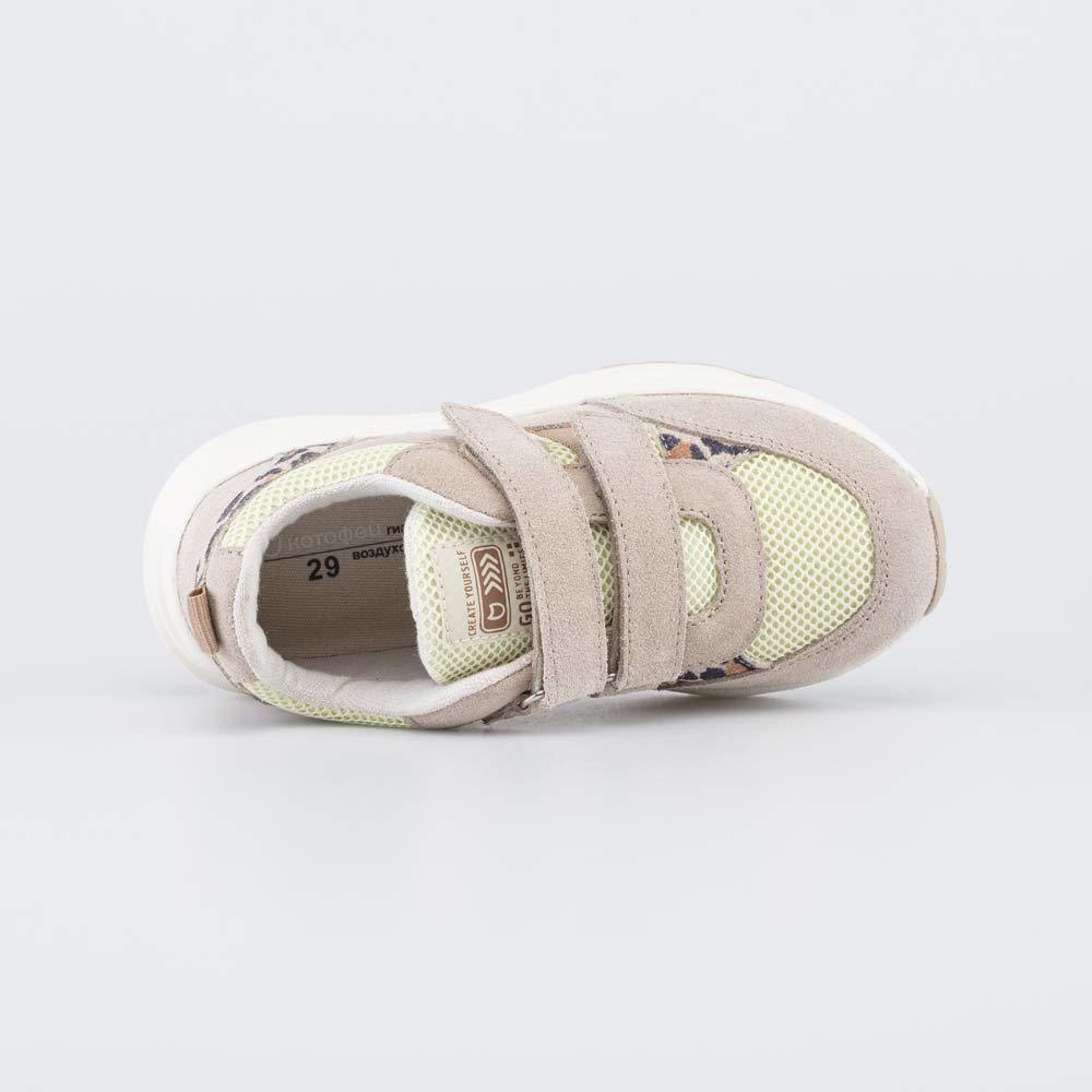 Описание Описание модели Легкие детские кроссовки Котофей для девочки отлично подходят на лето, для теплой и сухой погоды весны и осени, а также в детский сад. Верх летних бежевых кроссовок выполнен и... Показать описаниез комбинации натуральной кожи и спортивной сетки, которая образует сквозные отверстия и обеспечивает максимальный уровень вентиляции. Подкладочные элементы из натурального хлопка формируют оптимальный для стоп микроклимат. Съемная хлопковая стелька на формованной основе отводит влагу и мягко амортизирует. Модель на липучках легко обувать и снимать, а эластичные шнурки отвечают за плотное прилегание обуви к стопе. Модная утонченная подошва из резины обеспечивает амортизацию при ходьбе и образует наплыв на носочную часть, защищая ее от повреждений. Обувь для детей анатомически правильная: имеет приподнятость пяточной части, округлый носок и в меру жесткий задник. Для поддержания внешнего вида светлой обуви рекомендуем обрабатывать её защитными спреями и чистить мягкой щеткой. Сделано в России.