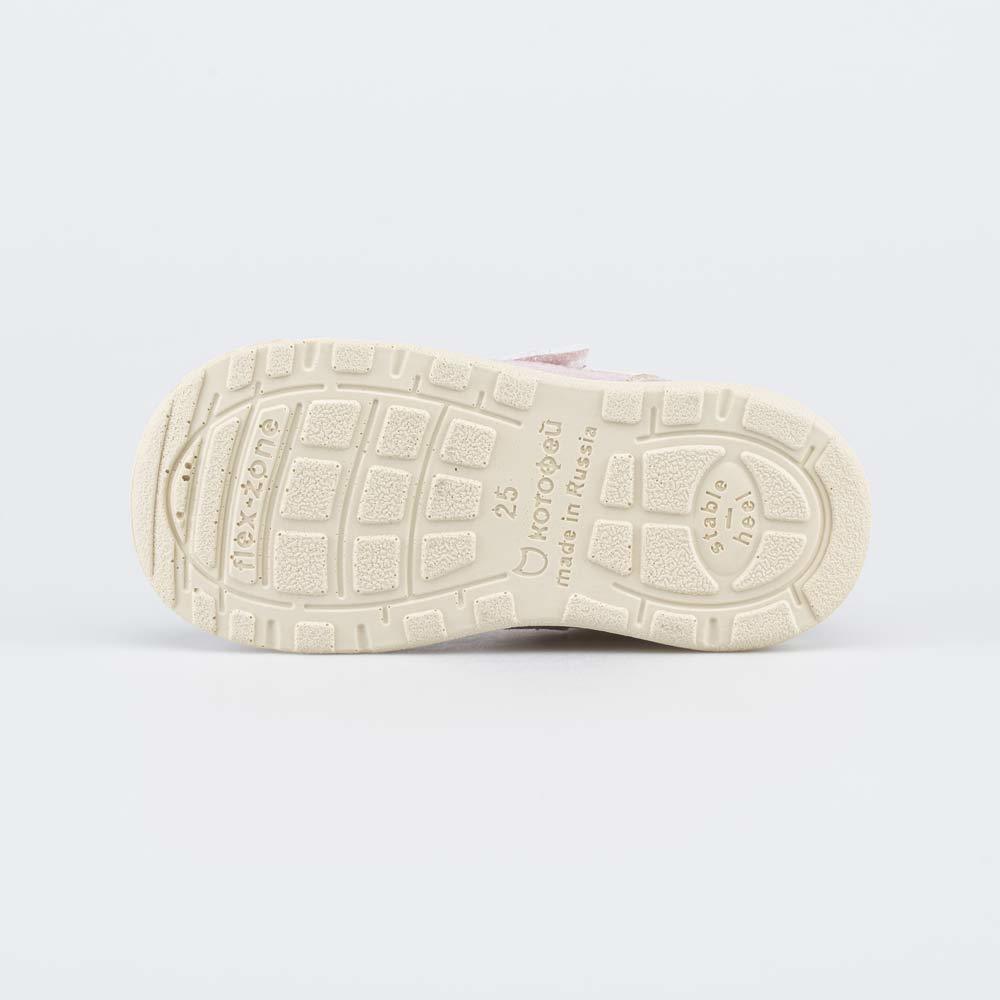 Описание Описание модели Детские кожаные полуботинки выполнены в сочетании пастельных оттенков и подходят для девочки, которая только начинает ходить. Верх изготовлен из гипоаллергенной и дышащей нату... Показать описаниеральной кожи разных фактур (гладкая кожа, нубук). Дополнительную вентиляцию обеспечивает перфорация в носочной части. Подкладка из натурального хлопка создает оптимальный микроклимат внутри обуви и отводит от стоп влагу. Формованная основа хлопковой стельки мягко амортизирует. В меру жесткий задник надежно фиксирует пяточку при ходьбе, а мягкий манжет дарит комфорт. Полуботинки на липучках, которые позволяют быстро обувать и разувать ребенка. Легкая и гибкая подошва из ПУ (полиуретана) только выглядит плоской. Во внутреннем пространстве обуви имеется необходимая приподнятость пяточной части. Модель разработана для детей, которые только делают свои первые шаги, поэтому большое внимание уделено правильности анатомической конструкции. Сделано в России.