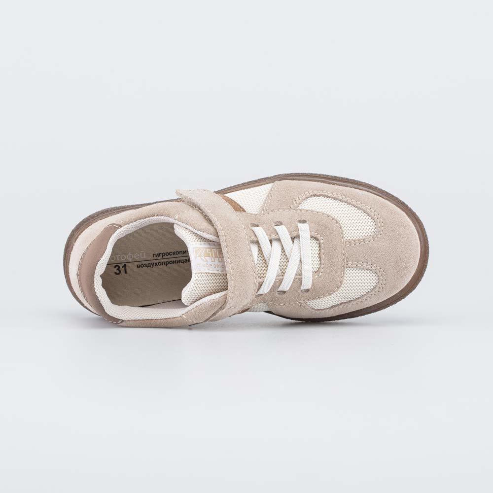 Описание Описание модели Кожаные кеды для детей, разработанные с учетом особенностей детской стопы, выполнены в универсальном бежевом цвете и отлично дополняют образ юных модников. Эти бежевые кеды им... Показать описаниееют верх из сочетания гипоаллергенной и дышащей натуральной кожи-велюра и плотного сетчатого материала, который повышает воздухопроницаемость детской обуви и обеспечивает комфорт для ножек даже при длительной носке. Подкладка из натурального хлопка отвечает за эффективное потоотведение. Формованная основа съемной хлопковой стельки амортизирует и поддерживает стопу. Детские кеды на липучках дополнены шнурками-резинками, которые не требуют завязывания и обеспечивают плотное прилегание обуви к ножкам. Модная бежевая подошва из ТЭП (термоэластопласта) обеспечивает амортизацию при ходьбе. Обувь для детей имеет правильную анатомическую конструкцию: задник необходимой жесткости, незаметную приподнятость пяточной части, округлый носок. Сделано в России.