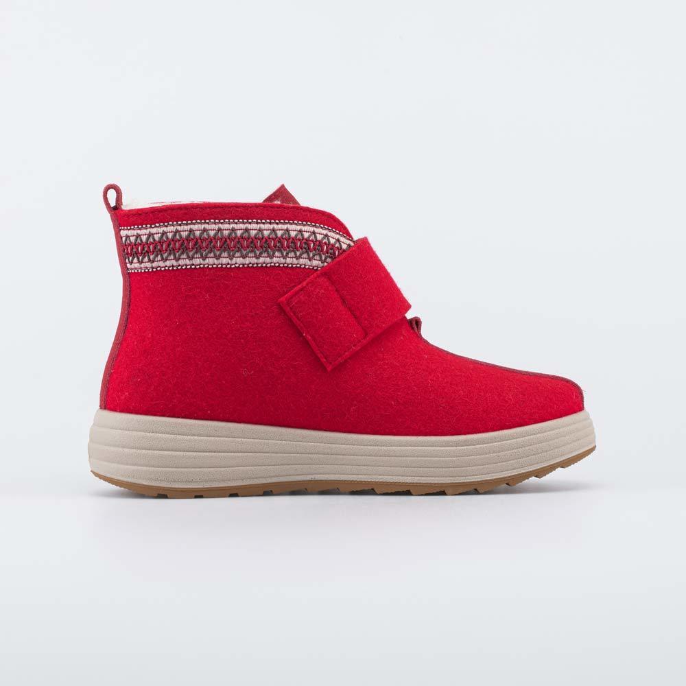 Описание Описание модели Красные валенки, выполненные в стиле войлочных ботинок, обеспечивают тепло в мороз и сохраняют комфорт при влажной погоде до +5 градусов. Женские валенки имеют верх из плотног... Показать описаниео и дышащего натурального войлока. Он создаёт благоприятный микроклимат внутри обуви, дарит стопам сухое тепло и оказывает массажный эффект. Войлочная стелька снабжена петелькой, чтобы легко вынимать ее для проветривания. Отсутствие меховой подкладки делает модель особенно подходящей для тех, кто часто заходит с улицы в помещение или передвигается на автомобиле. Укороченные валенки на липучках надежно фиксируются на ногах, их удобно обувать и снимать. Красный цвет делает модель ярким дополнением женского образа. Легкая подошва из ЭВА обеспечивает амортизацию. Такие валенки отлично подходят для ежедневной носки в реалиях активного городского ритма. Модель анатомически правильная: обеспечивает комфортную поддержку стоп в течение длительного времени. Сделано в России, ТМ Гуслицкие.