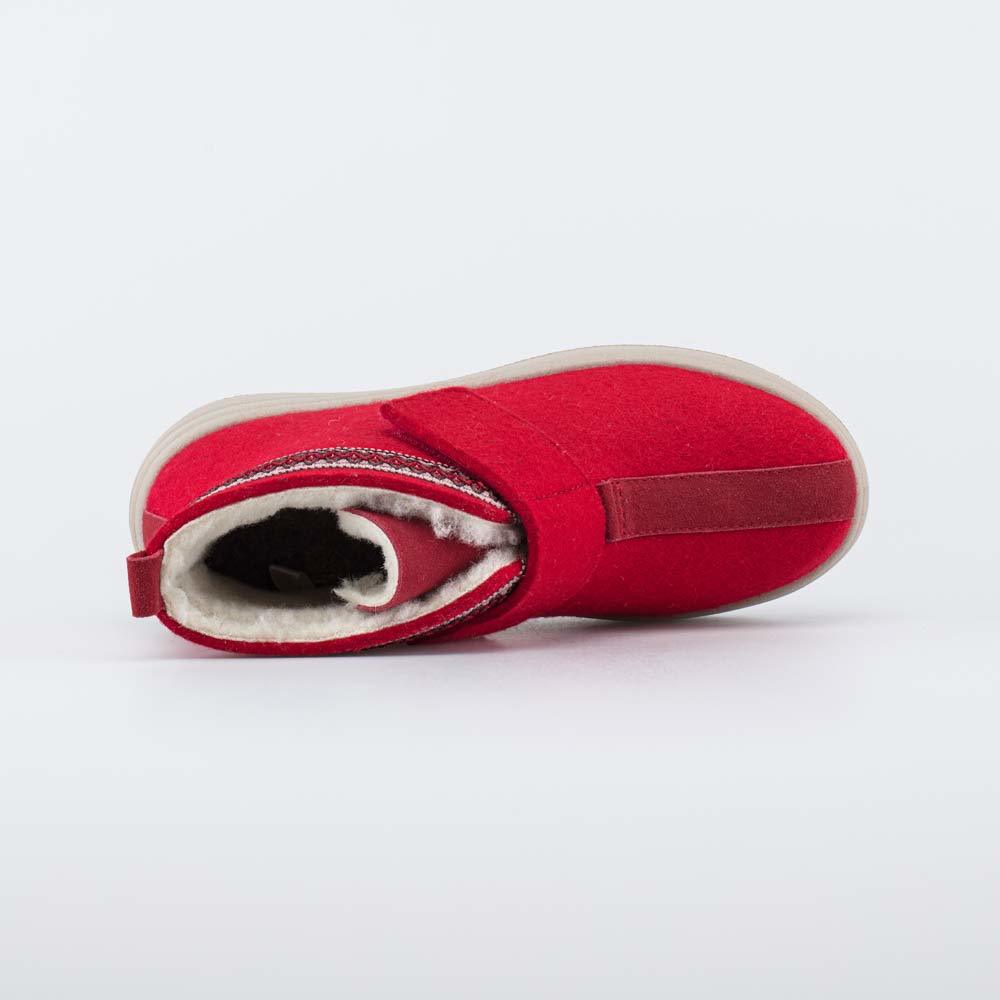 Описание Описание модели Красные короткие валенки дарят ногам уют натурального войлока и при этом отлично сочетаются с модными образами современной женщины. Войлок плотный, с водоотталкивающими свойст... Показать описаниевами. Он надежно сохраняет тепло, дышит и создаёт приятный микроклимат вокруг стопы. Украшение в виде декоративной тесьмы придает модели выразительности. Эти теплые валенки имеют подкладку из шерстяного меха и войлочную стельку. Она снабжена петелькой, чтобы легко вынимать ее для проветривания. Валенки с липучкой обладают хорошей раскрываемостью, их удобно обувать и снимать. Кедовая подошва из ПУ (полиуретана) сохраняет зимнюю обувь легкой, а резиновая накладка на ходовой поверхности обеспечивает ей устойчивость на зимних дорожках. Модель анатомически правильная: имеет небольшую приподнятость в задней части, а стелька из войлока приформовывается к своду стопы, принимая индивидуальную форму. Это обеспечивает ногам комфорт даже при долгой ходьбе. Сделано в России, ТМ Гуслицкие.