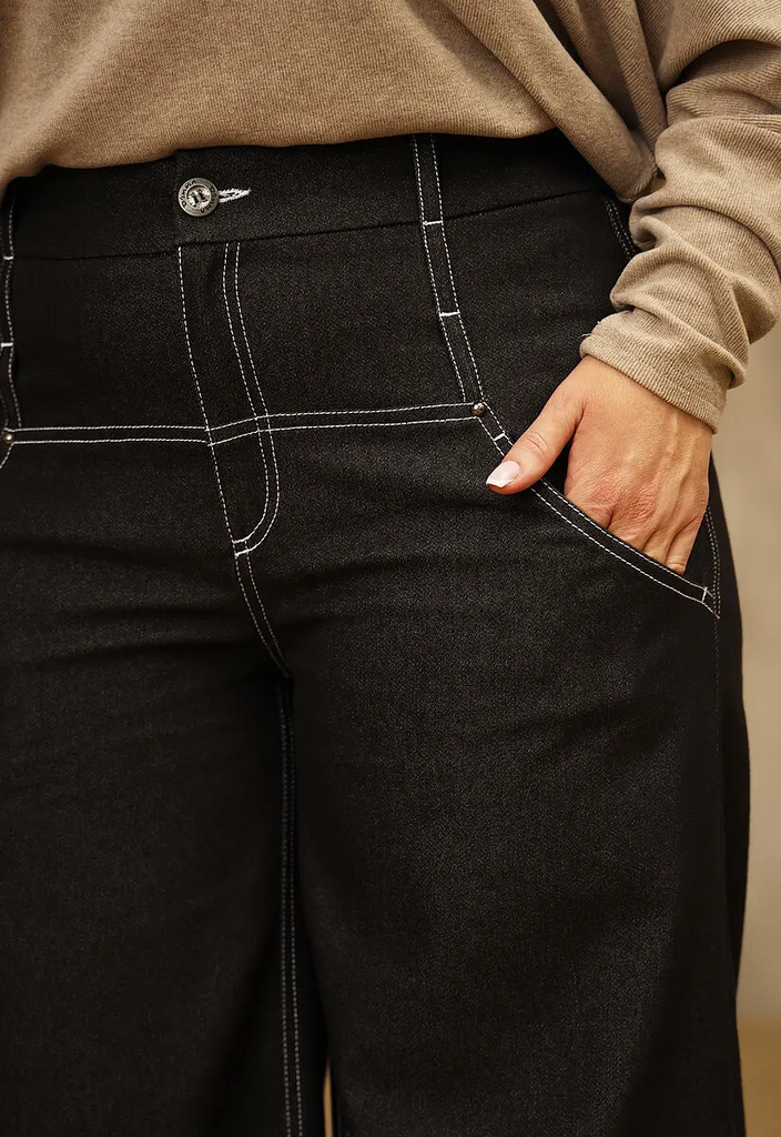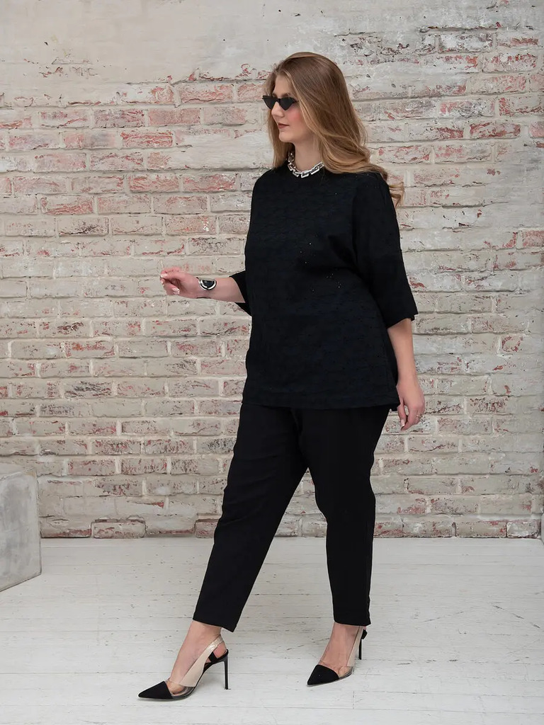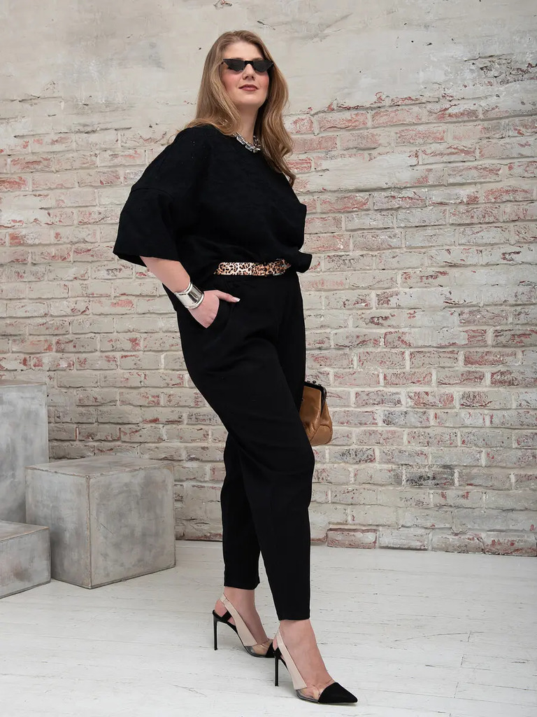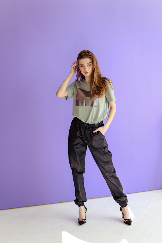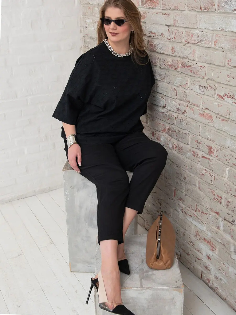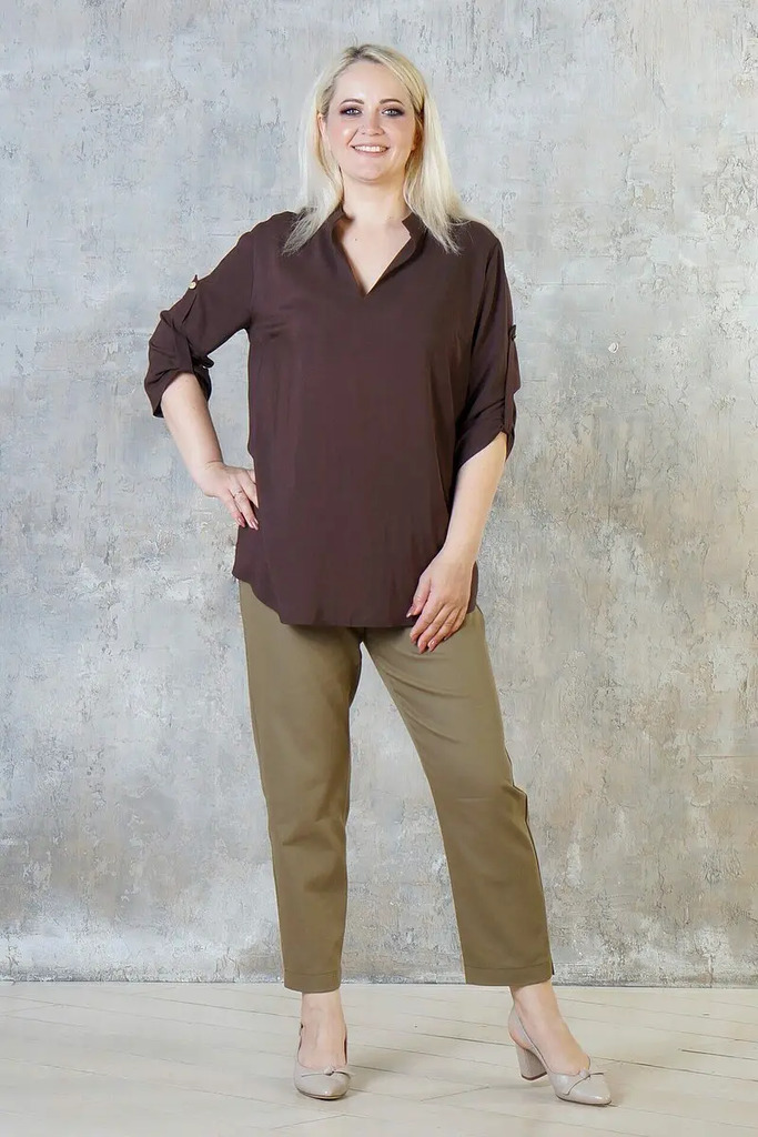 Отснято с черной блузкой Б13848-10М Широкие брюки делают образ элегантным, визуально вытягивают силуэт. Оригинальная модель идеально сидит на фигуре любого типа благодаря завышенной линии талии, росто... Показать описаниевка брюк рассчитана таким образом, чтобы брюки подходили как для высоких девушек, так и для невысоких. Приталенный силуэт (не оверсайз), красивая форма. Демисезонные стильные брюки сшиты из прочного материала без утеплителя. С такой моделью штанов можно легко составить множество повседневных образов: в школу, на работу и деловую встречу. А также нарядные образы: на день рождения, на прогулку по городу с друзьями. Брюки подойдут на осень, весну и как зимний и летний универсальный вариант.