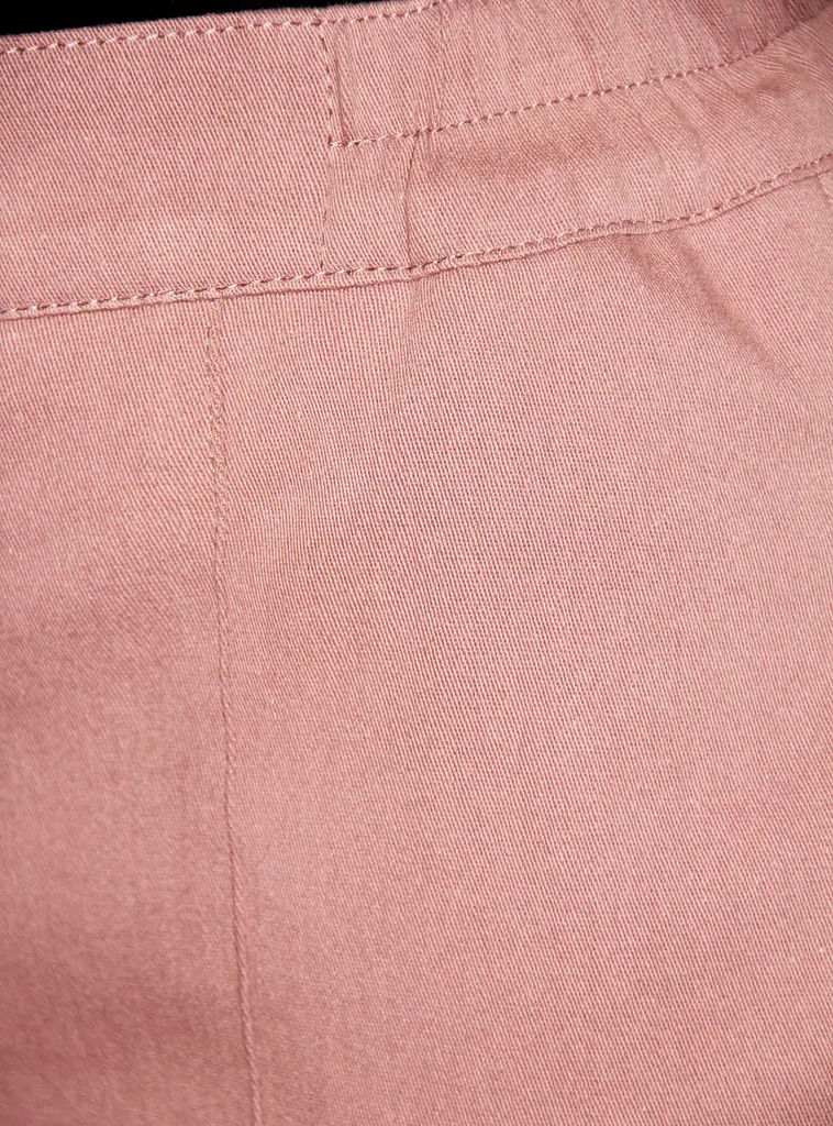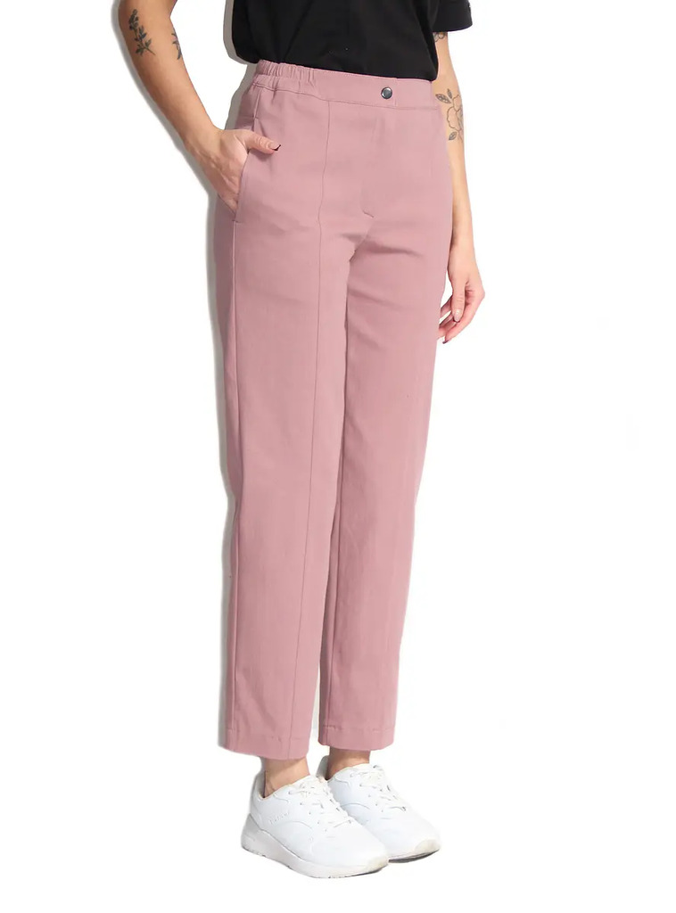 Брюки выполнены из облегченной джинсовой ткани приятного пепельно-розового цвета. Слегка зауженный силуэт, рельефные швы по переду, боковые карманы, по спинке кокетка, пояс оснащен эластичными участка... Показать описаниеми для удобной посадки. Состав ткани : хлопок 75%, ПЭФ 25%. Размерный ряд с 44 по 50.