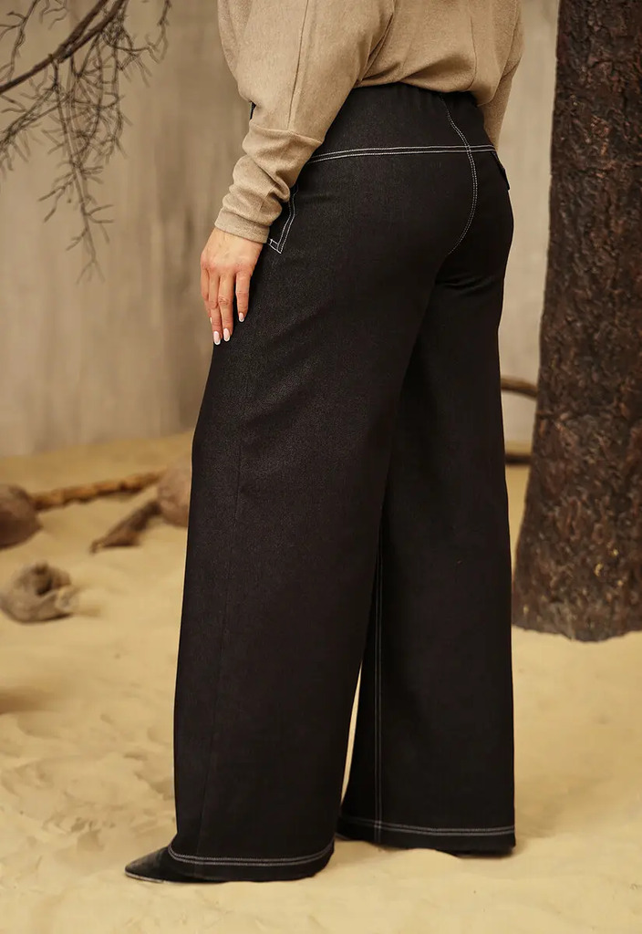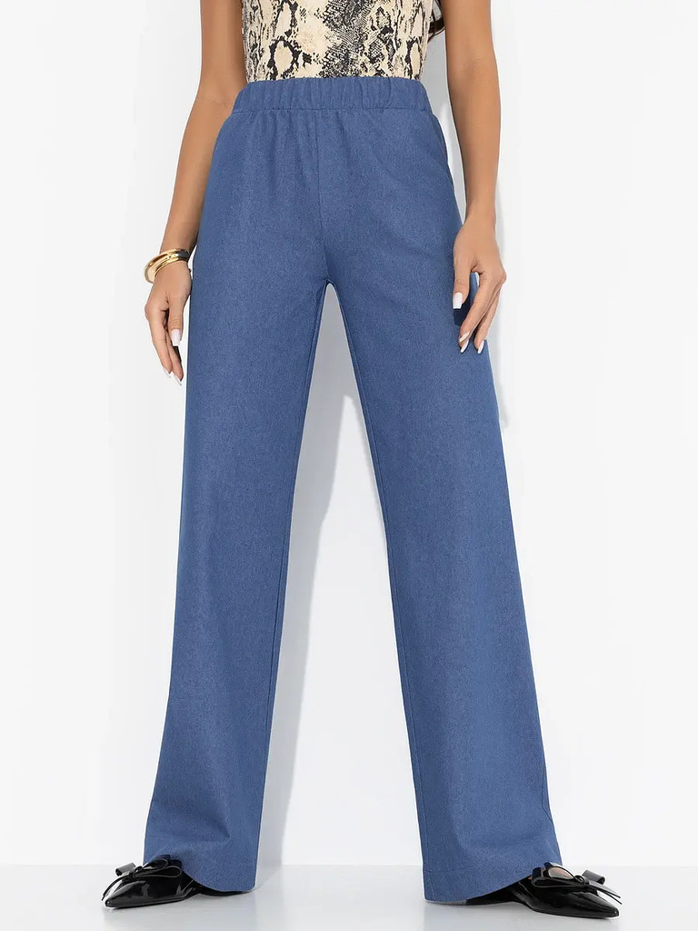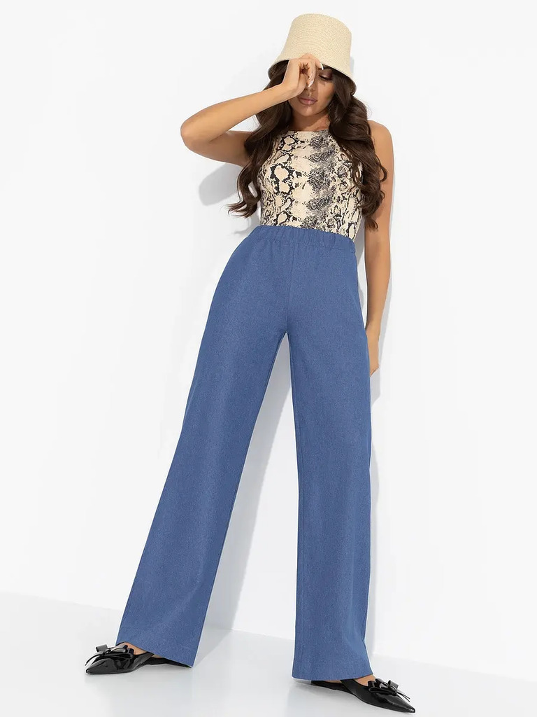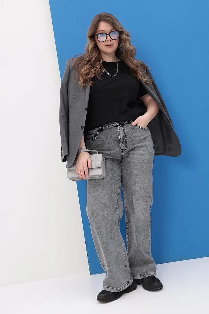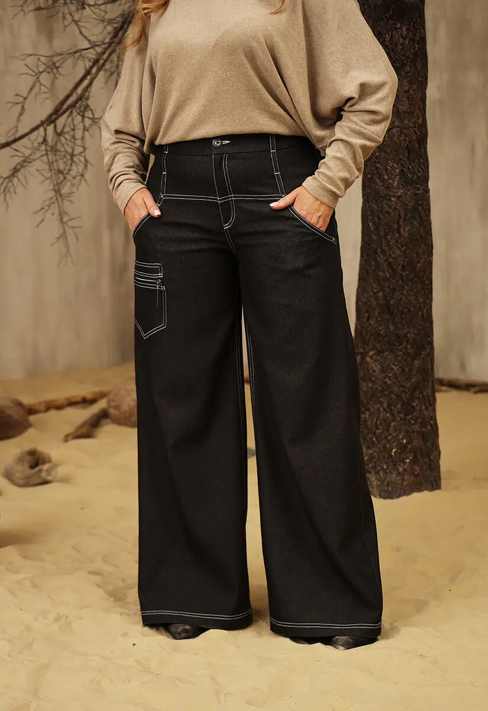 Представляем вашему вниманию брюки женские, которые станут неотъемлемой частью вашего гардероба и подчеркнут вашу индивидуальность в любой ситуации. Эти классические брюки палаццо созданы для того, чт... Показать описаниеобы дарить вам комфорт и стиль одновременно. Их широкий крой и легкое тканевое исполнение делают их идеальными для весеннего сезона, когда важно чувствовать себя свободно и уверенно. Брюки из стрейчевой ткани «джинс», с безупречными ровными контрастными строчками, создают неповторимый стильный образ не только стройняшкам. Полненьким девушкам наши длинные джинсовые брюки зрительно удлиняют фигуру и дарят уверенность в своей привлекательности.Мы предлагаем брюки женские больших размеров, каждая женщина, независимо от размера и фигуры, найдет в этих брюках то, что ей нужно. Они прекрасно сидят на талии, обеспечивая идеальную среднею посадку. Для лучшей регулировки по талии, пояс сзади собран на резинку. Модные заниженные карманы необычной формы, многоуровневые шлевки для ремня и маленький функциональный карманчик спереди придают любому комплекту нотку кокетства. Данную модель можно сочетать с большей частью гардероба, создавая каждый раз новый образ.Попробуйте их сочетать с яркими топами или классическими блузками — результат вас приятно удивит! Благодаря высокому качеству материала и современному дизайну, эти брюки подчеркнут вашу женственность и добавят нотку элегантности в ваш стиль. Носите их с удовольствием, ведь они созданы для того, чтобы стать вашим любимым элементом одежды.