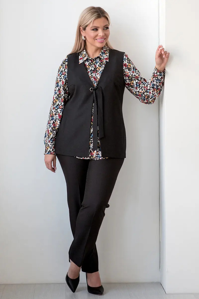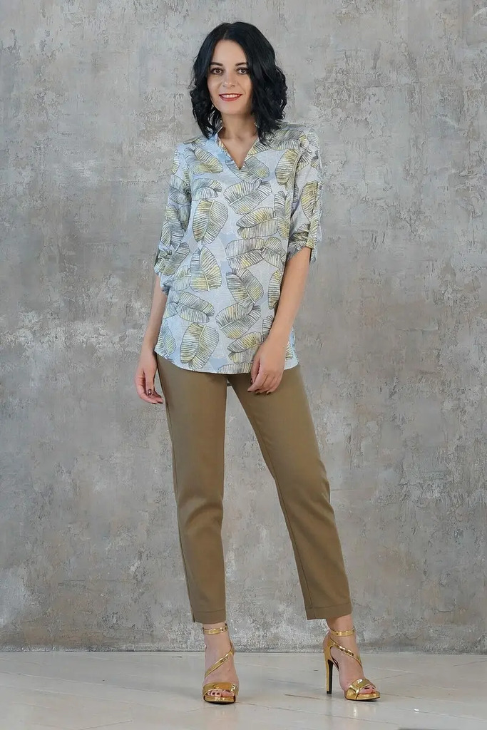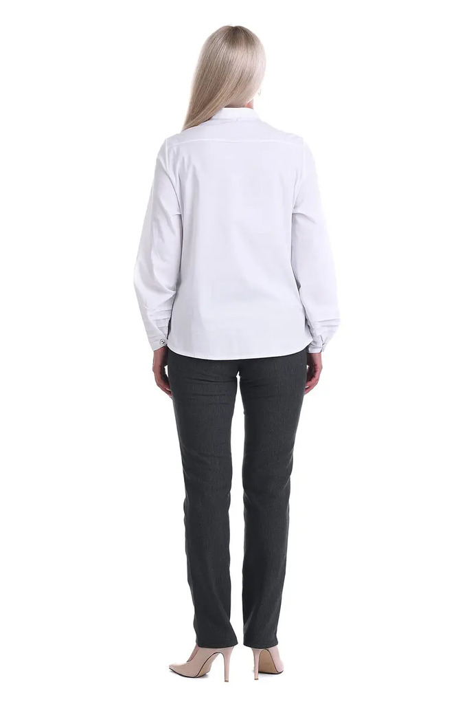 Элегантная блузка полуприлегающего силуэта из блузочной ткани крепового переплетения с мелким абстрактным рисунком для маленьких и больших размеров. Хорошо сочетается с изделиями из черной и джинсовой... Показать описание ткани. Перед и спинка с вертикальными рельефами. Рукав втачной с манжетом на две пуговицы длиной 61 см. Спереди центральная застежка на петли и пуговицы, воротник отложной на притачной стойке по типу классической рубашки. Пуговицы выглядят очень аккуратно, со стороны практически не заметны. Состав - полиэстер - 80%, вискоза - 20%.