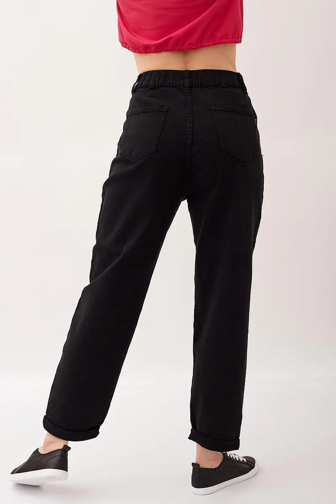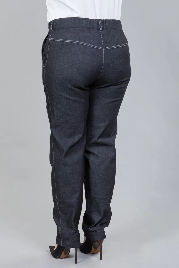 Удобные свободные брюки, выполнены из эластичной джинсовой ткани. Брюки с высокой посадкой, с притачным поясом с застежкой на замок-молнию по переду и отрезными кокетками по спинке. Пояс брюк со шлевк... Показать описаниеами, по спинке на широкой резине. Брюки с удобными боковыми карманами. По боковым швам, поясу, карманам и кокеткам проложены отделочный строчки контрастными нитками. Брюки без подклада. Длина по внешнему шву (с поясом) в 48 р-ре –В В 107 см. в 60 р-ре –В В 110 см., длина по внутреннему (шаговому) шву в 48 р-ре –В В 80 см. в 60 р-ре – 80 см.