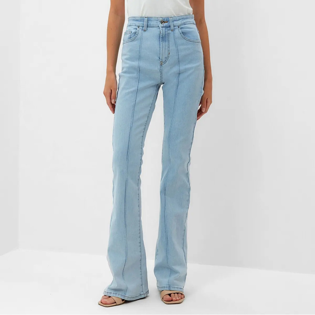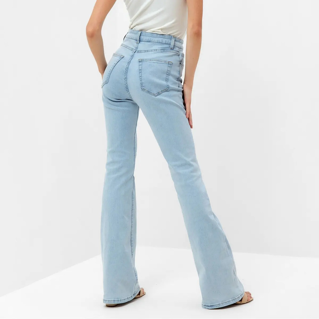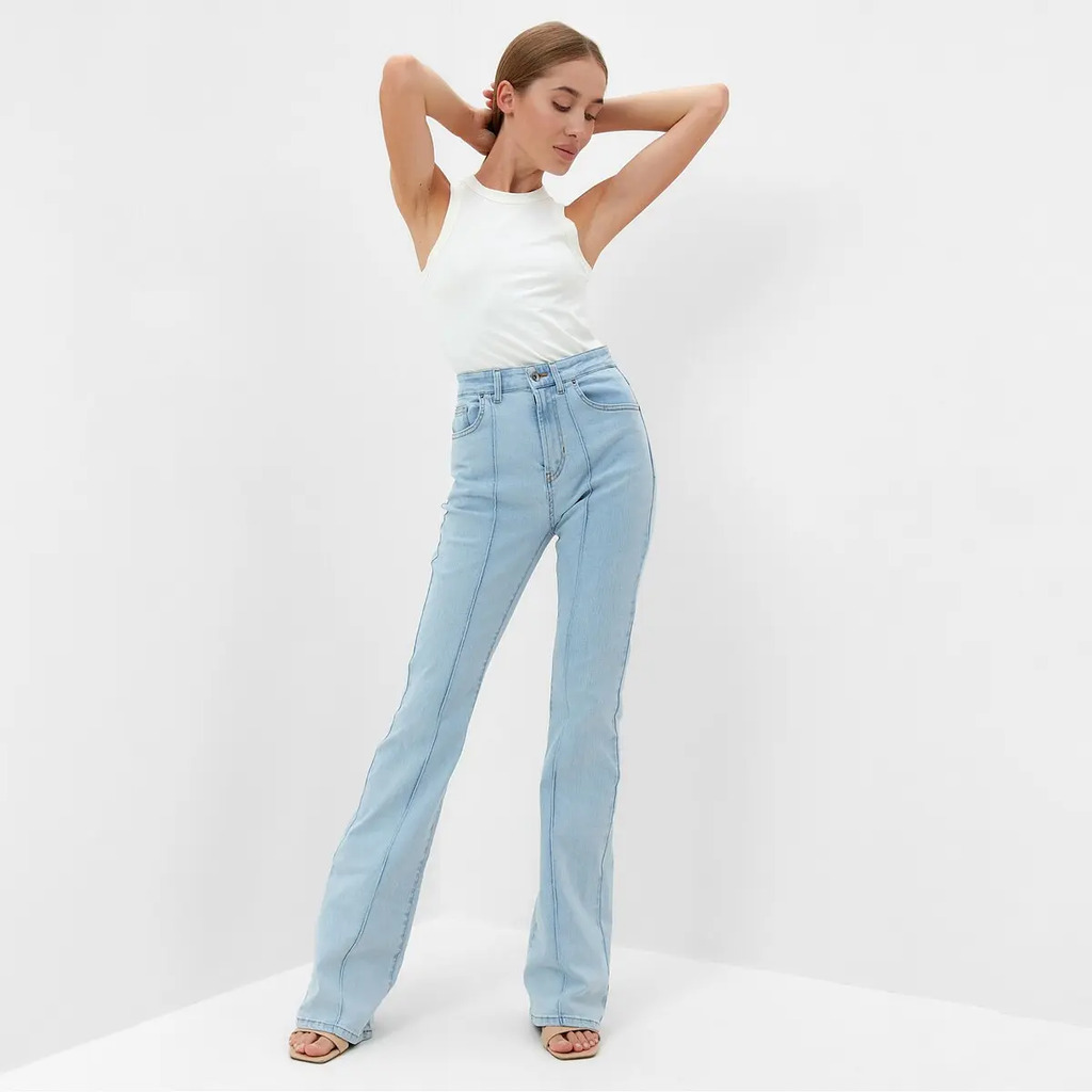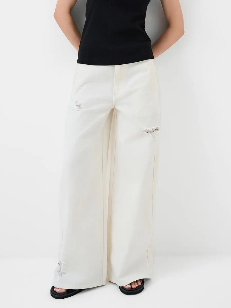 Широкие женские джинсы. Модель wild leg выполнена из светлого денима, с прямыми брюками и средней посадкой. Джинсы застегиваются на молнию и болт. Пояс на талии дополнен внутренней резинкой, что обесп... Показать описаниеечивает комфортную посадку. Спереди — удобные боковые карманы, сзади — накладные.