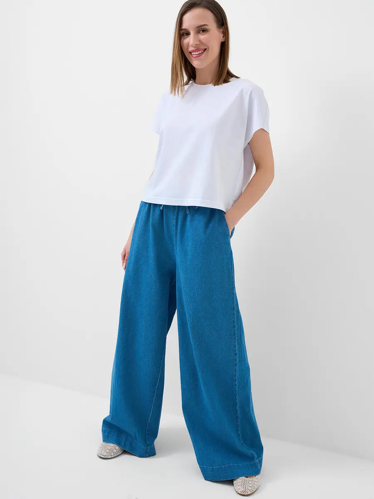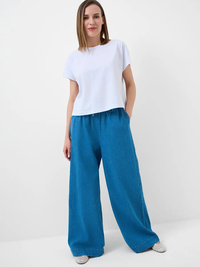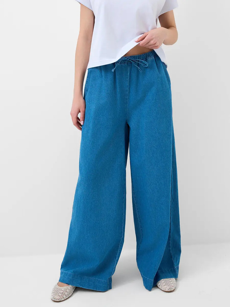 Джинсы женские. WIDE LEG - свободная посадка и расклешенные от бедра штанины. Высокая посадка. 100% хлопок. Джинсы на резинке со шнурком. Удобные боковые карманы. Модель выполнена из качественного и п... Показать описаниелотного текстиля.