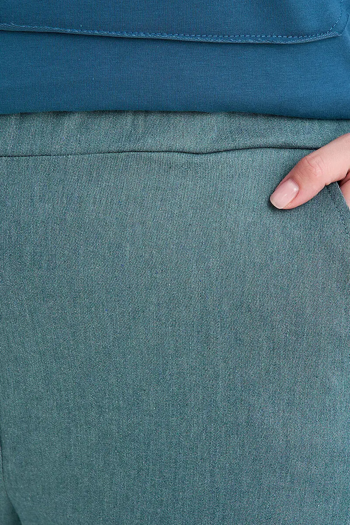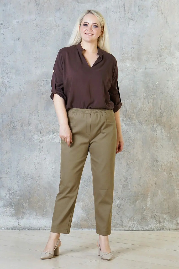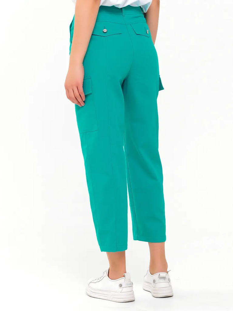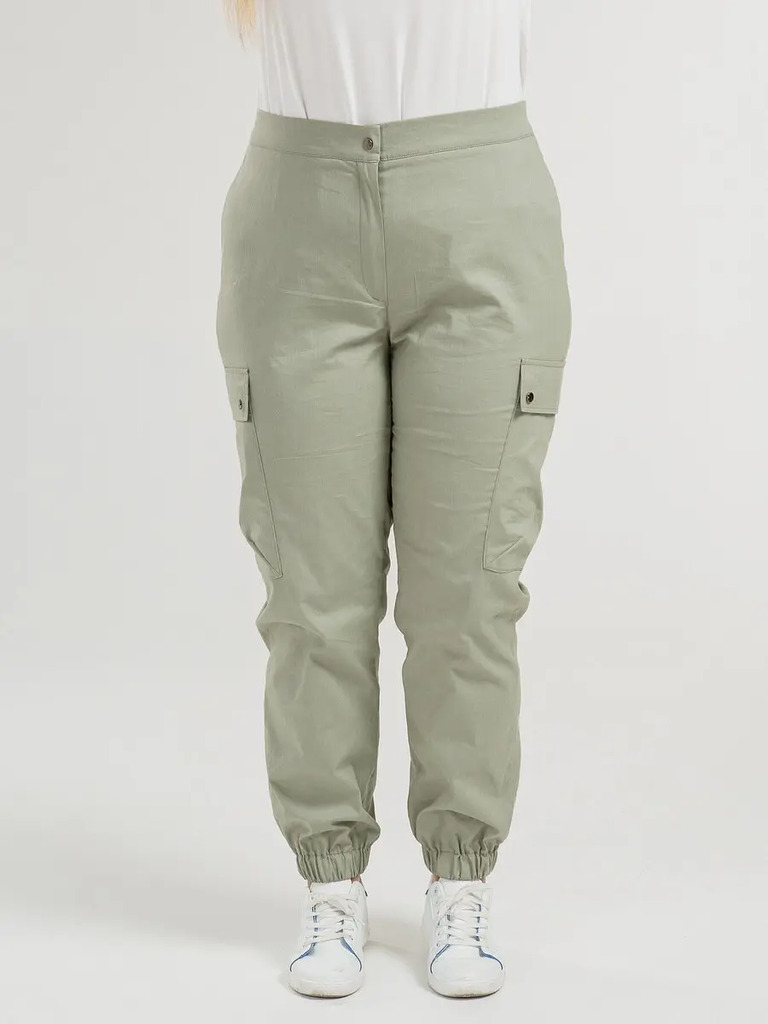 Повседневные брюки-карго выполнены из эластичного денима. Брюки с высокой посадкой, с большими накладными карманами, расположенными по бокам. Карманы с настрочными клапанами с застежкой на кнопки.В В ... Показать описаниеБрюки с притачным поясом с застежкой на замок-молнию и кнопку, по спинке пояс собран на резину. Длина по внешнему шву (с поясом) в 48 р-ре – 100 см. в 64 р-ре – 105 см., длина по внутреннему (шаговому) шву в 48 р-ре – 72 см. в 64 р-ре – 73 см. Низ брюк собран на широкую резину. Брюки без подклада. На фото представлены в комплекте с жакетом арт. 1276 хаки