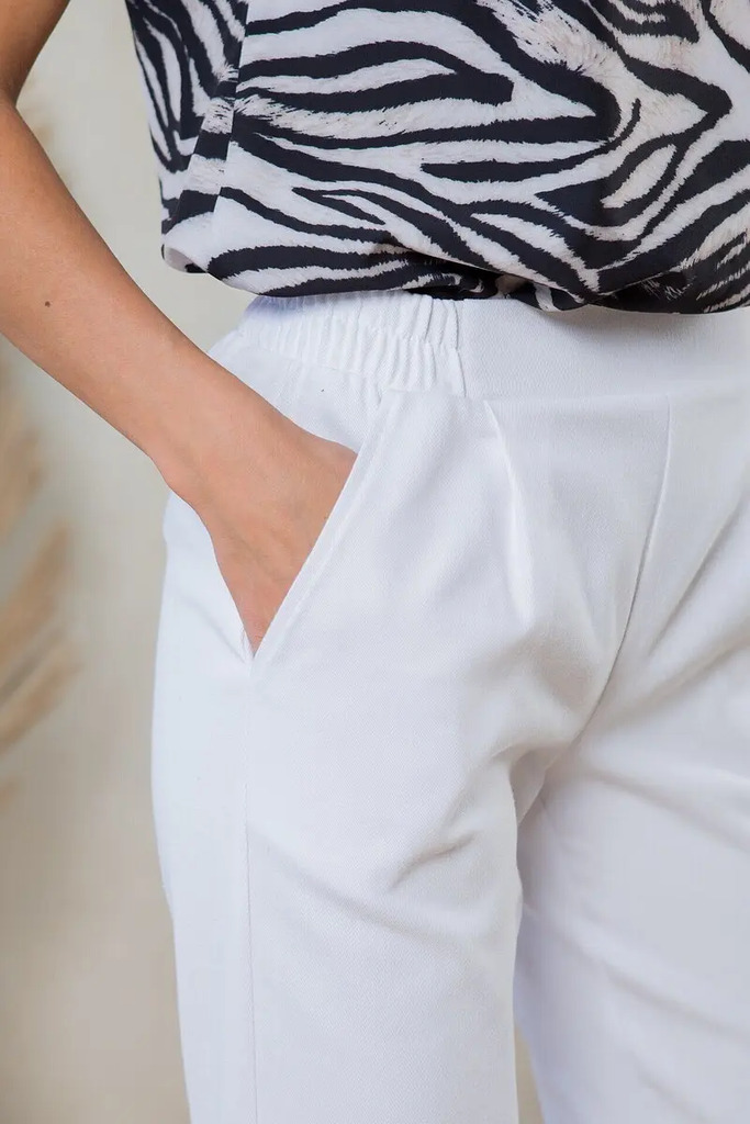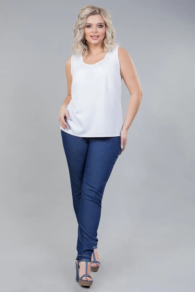 Модные современные брюки с полной высотой талии и дополнительным объемом в бедрах, заложенным в складки. Выполнены из джинсовой ткани с добавлением эластана. Расцветка белый. Комфортную посадку на тал... Показать описаниеии обеспечивает притачной пояс с эластичной резинкой. С карманами. Идеальный вариант для офиса и повседневной носки. Рекомендуемая стирка при t не более 30. ДИ в 48-64р 102 см. Рост модели 170 см, размер 54.