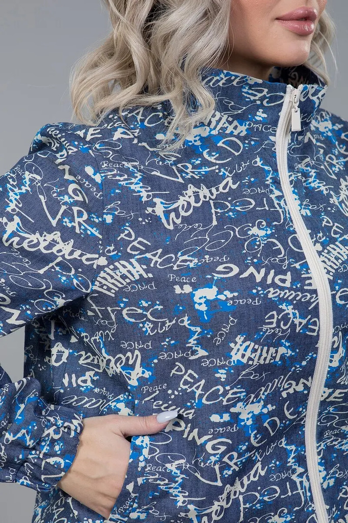 Удобная куртка-бомбер свободного силуэта, выполнена из эластичного джинсового полотна. Бомбер по переду с центральной застежкой на разъемный замок молнию и удобными прорезными карманами с листочкой. С... Показать описаниепинка целая. Рукав втачной длинный с притачным манжетом по низу. Длина рукава в 46 р-ре – 61 см. в 56 р-ре – 62 см. ширина рукава по низу в 46 р-ре – 18 см. (без натяжения) в 56 р-ре – 22 см. (без натяжения). Горловина переда и спинки с прилегающим воротником-стойкой. Бомбер по низу с притачным поясом. Пояс бомбера и манжеты рукавов собраны на резину. Бомбер без подклада. Длина изделия по спинке в 46 р-ре – 61 см. в 56 р-ре – 67 см.