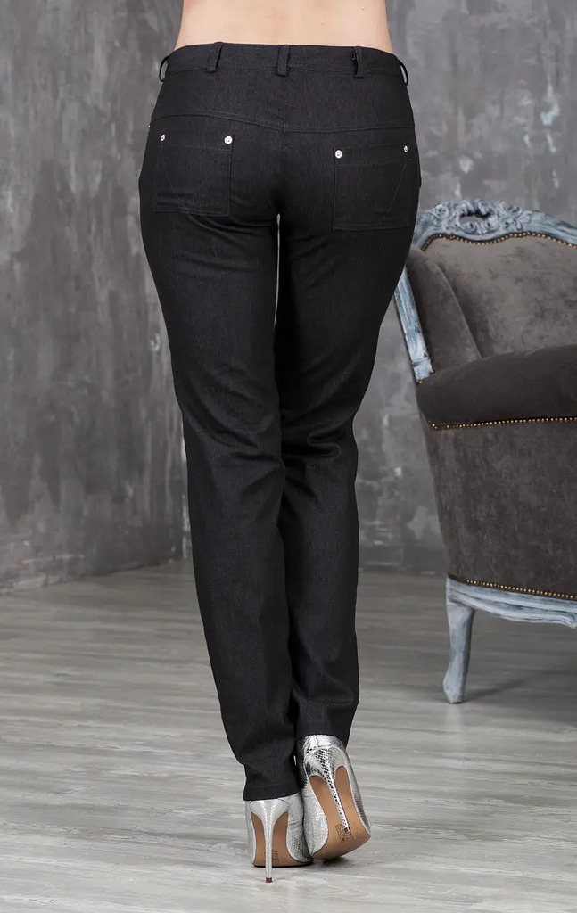 Классические брюки из плотной утягивающей ткани, эталонной длины до каблука средней удобной посадки. Со свойственной для изделий из денима декоративной отстрочкой, накладными карманами сзади и врезным... Показать описаниеи боковыми фальш-карманами спереди. Модель уравновешивает силуэт, корректирует линии, придает образу подтянутый деловой вид. Брюки универсальны, уместны в любой ситуации. Оптимальный выбор для базового гардероба. Длина бокового шва/длина шагового шва/ширина брючины низ соответственно: р.48-109,2см/79,9см/17,9см р.50-109,4см/79,7см/18,5см р.52-109,6см/79,5см/19,1см р.54-109,7см/78,9см/19,7см р.56-109,8см/78,6см/20,3см р.58-109,9см/78,1см/20,9см р.60-110,1см/77,6см/21,5см р.62-110,1см/77,2см/22,1см р.64-110,1см/76,6см/22,7см р.66-110,1см/76,0см/23,3см р.68-110,2см/75,4см/23,9см р.70-110,2см/74,9см/24,5см