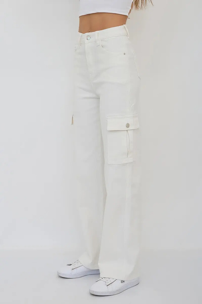 Стильные, модные брюки с накладными карманами по бокам. Красивая и практичная женская одежда для отдыха и активного образа жизни на каждый день. Широкие штанины с карманами изготовлены из джинса. Брюк... Показать описаниеи отличаются практичностью и превосходной посадкой по фигуре.