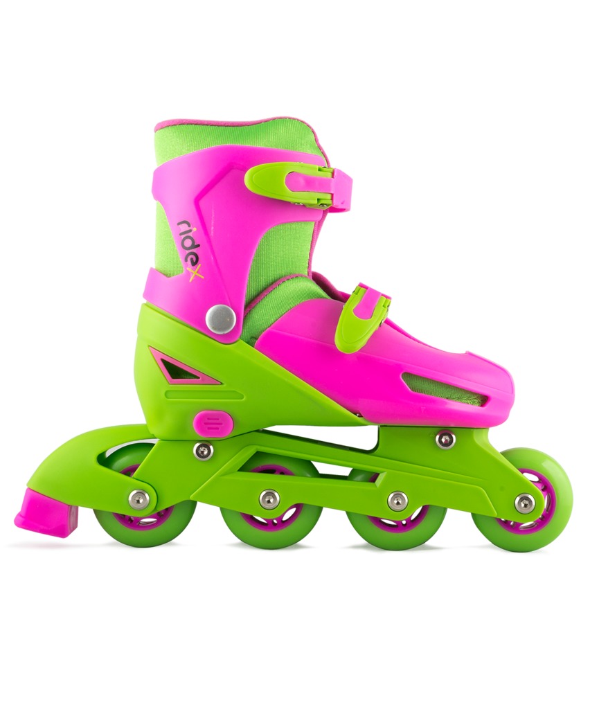 Ролики раздвижные Yummy - это бюджетная модель для начинающих. Подойдет детям, подросткам и взрослым людям (по большей части женской аудитории). Полностью пластиковая конструкция внешнего ботинк... Показать описаниеа. Единая конструкция внешнего ботинка и рамы предотвращает возможные подвывихи у начинающих голеностопного сустава. Модель с простыми подшипниками, но имеющая автоматическую систему раздвижения. За счет стильного дизайна эта модель будет интересна даже самому предвзятому пользователю. Технические характеристики: Внешний ботинок: пластик Внутренний ботинок: ткань, пенополиуретан Механизм застегивания: бакля пластиковая с клипсой Система раздвижки: автомат Рама: пластик Подшипники: 608Z Материал колеса: ПВХ Размер колеса: XS S 64 х 22 mm M – 70 х 22 mm L – 70 х 22 mm Размер ботинка: XS – 27 - 30 S – 31 - 34 M – 35 - 38 L – 39 - 42 Упаковка: удобная сумка с ручкой Производство: КНР