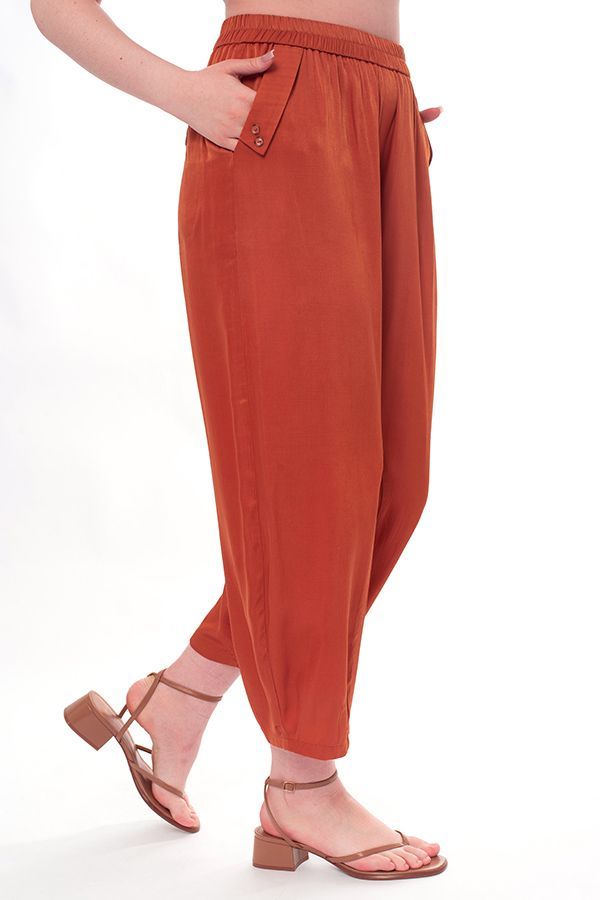 Подробное описание: https://nobbycon.ru/artikul-707-172.html Сезон: Лето. Брюки свободного кроя, близкие по силуэту к брюкам "алладин", из легкой вискозной летней ткани. Детали: спереди имитация гульфика, боковые карманы с отрезным бочком, с оригинальным отлетным клапаном и пуговицей. Сзади под кокеткой прорезные карманы на пуговице. В поясе резина. По передней и задней половинке брюк фигурные резы, по низу вытачки.Длина по внутреннему шву-65 см. Ширина по линии низа - 23 см. *Числовые параметры соответствуют размеру 46. Размер модели на фото: 46. Параметры модели: 86-66-96. Рост модели на фото: 175 см. Производитель: Черно-Красная Этикетка. Состав ткани: Район 50%, Полиэстер 50%. Сезон: Лето. Пол: Женский. Посадка: Высокая. Силуэт: О-силуэт. Длина: 9/10 Дизайн ткани: Однотонный. Цвет: Карамельный апельсин. Тэги: * Лето. * Высокая посадка. * О-силуэт. * 9/10 * Султанки. * Алладин. * Карамельный апельсин. * терракот.
