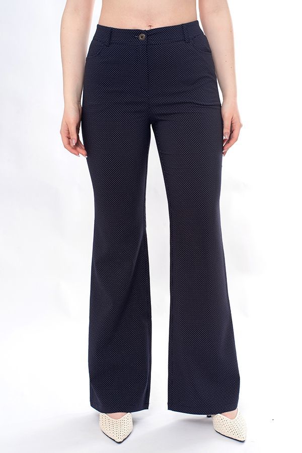Подробное описание: https://nobbycon.ru/artikul-71-162.html Сезон: Весна-Осень, Лето. Модель брюк в полную длину, с небольшим клешем от колена. Детали: спереди застежка на молнию и пуговицу, боковые карманы с горизонтальным входом. Сзади в поясе резина на сборке, шлевки на поясе. Длина по внутреннему шву - 84 см. Ширина низа - 27,5 см. Числовые параметры соответствуют размеру 44. Размер модели на фото: 46. Параметры модели: 86-66-96. Рост модели на фото: 175 см. Производитель: Черно-Белая Этикетка. Состав ткани: Полиэстер 75%, Вискоза 22%, Лайкра 3%. Сезон: Весна-Осень, Лето. Пол: Женский. Посадка: Высокая. Силуэт: Клеш от колена. Длина: Полная. Дизайн ткани: Белый горох. Цвет: Синий. Тэги: * Лето. * Весна-Осень. * Легкий клеш от колена. * Высокая посадка. * Горох. * Синий.