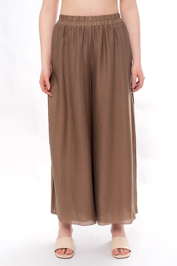 Подробное описание: https://nobbycon.ru/artikul-12-357.html Сезон: Лето. Воздушные двойные брюки из легкой ткани с большим содержанием тенсела. Детали: в поясе резина, верхний слой брюк с разрезом 28 см. в боковом шве (от пояса).Длина по внутреннему шву - 67,5 см. Ширина по линии низа: 42 см. *Числовые параметры соответствуют размеру 44-46. Размер модели на фото: 44-46. Параметры модели: 86-66-96. Рост модели на фото: 175 см. Внимание! Размеры сдвоенные: 44-46, 48-50, 52-54. Производитель: Черно-Белая Этикетка. Состав ткани: Тенсель 80%, Нейлон 20%. Сезон: Лето. Пол: Женский. Посадка: Высокая. Силуэт: Прямой. Длина: 9/10 Дизайн ткани: Однотонная вертикальная жатка. Цвет: Светло-коричневый. Тэги: * Лето. * Юбка-брюки. * Прямой. * Свободный. * Широкий. * Высокая посадка. * Светло-коричневый.
