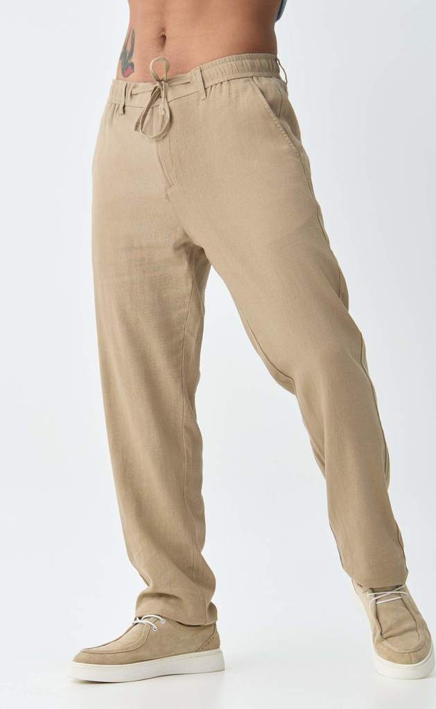 Брюки льняные мужские светло-коричневого цвета от бренда Fine Joyce – это универсальная и стильная модель для активной жизни. Брюки из льна – неотъемлемая часть летнего мужского гардероба, без которой... Показать описание едва ли можно сегодня обойтись. Все наши льняные брюки шьются из 100% натурального льна высшего качества и проходят дополнительную энзимную обработку, в результате чего они не подвержены усадке при последующих стирках и не линяют. Окрашены брюки мужские натуральными, не агрессивными красителями, которые экологичны и безопасны. Брюки мужские классические свободного кроя, пояс на пуговице со шлёвками под ремень. Имеются боковые карманы с отрезным бочком и задние прорезные карманы. Длина внутреннего шва для всех размеров 86 см. Летние брюки из льна обладают всеми достоинствами натуральных материалов, позволяют телу дышать в теплую погоду, приятно ощущаются на теле и делают их невероятно удобными. Льняные брюки оптом отлично подойдут на жаркую погоду как для офиса, так и для отдыха, а в сочетании с льняной рубашкой Fine Joyce или джинсовой рубашкой Primm можно создать расслабленный повседневный образ для лета. Льняные брюки – базовый элемент одежды для активных и стильных парней и мужчин. Они удобны и практичны при вождении авто, а также, если Вы активны и много двигаетесь. Брюки идеальны для спортивных прогулок, активного отдыха на свежем воздухе, для выезда на природу. С помощью этой модной вещи можно собрать любой образ: от спортивного на пляж, в зал, на вечеринку, до классического на отдых, в офис. Мужские брюки оптом представлены как стандартными размерами – от 46 до 52, так и большими размерами – от 54 до 56. Летние брюки для мужчин от бренда Fine Joyce приятно удивят своим качеством и подарят ощущение максимального комфорта. Вы можете купить брюки оптом на нашем сайте по выгодным ценам. Для удобства в карточке товара расположено фото с мерками. Fine Joyce — динамично развивающийся российский бренд. Fine Joyce — высокое качество по оптимальной цене!