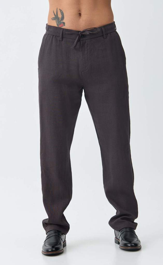 Брюки льняные мужские тёмно-серого цвета от бренда Fine Joyce – это универсальная и стильная модель для активной жизни. Брюки из льна – неотъемлемая часть летнего мужского гардероба, без которой едва ... Показать описаниели можно сегодня обойтись. Все наши льняные брюки шьются из 100% натурального льна высшего качества и проходят дополнительную энзимную обработку, в результате чего они не подвержены усадке при последующих стирках и не линяют. Окрашены брюки мужские натуральными, не агрессивными красителями, которые экологичны и безопасны. Брюки мужские классические свободного кроя, пояс на пуговице со шлёвками под ремень. Имеются боковые карманы с отрезным бочком и задние прорезные карманы. Длина внутреннего шва для всех размеров 86 см. Летние брюки из льна обладают всеми достоинствами натуральных материалов, позволяют телу дышать в теплую погоду, приятно ощущаются на теле и делают их невероятно удобными. Льняные брюки оптом отлично подойдут на жаркую погоду как для офиса, так и для отдыха, а в сочетании с льняной рубашкой Fine Joyce или джинсовой рубашкой Primm можно создать расслабленный повседневный образ для лета. Льняные брюки – базовый элемент одежды для активных и стильных парней и мужчин. Они удобны и практичны при вождении авто, а также, если Вы активны и много двигаетесь. Брюки идеальны для спортивных прогулок, активного отдыха на свежем воздухе, для выезда на природу. С помощью этой модной вещи можно собрать любой образ: от спортивного на пляж, в зал, на вечеринку, до классического на отдых, в офис. Мужские брюки оптом представлены как стандартными размерами – от 46 до 52, так и большими размерами – от 54 до 56. Летние брюки для мужчин от бренда Fine Joyce приятно удивят своим качеством и подарят ощущение максимального комфорта. Вы можете купить брюки оптом на нашем сайте по выгодным ценам. Для удобства в карточке товара расположено фото с мерками. Fine Joyce — динамично развивающийся российский бренд. Fine Joyce — высокое качество по оптимальной цене!