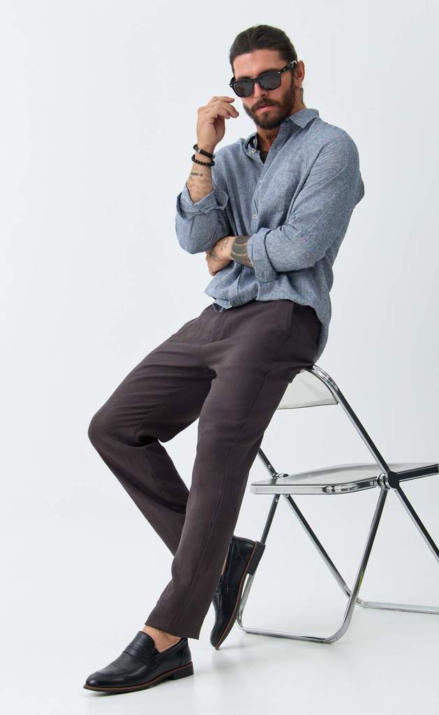 Бренд Primm предлагает Вашему вниманию коллекцию мужских льняных брюк. Брюки из льна – неотъемлемая часть летнего мужского гардероба, без которой едва ли можно сегодня обойтись. Все наши льняные брюки... Показать описание шьются из 100% натурального льна высшего качества и проходят дополнительную энзимную обработку, в результате чего они не подвержены усадке при последующих стирках и не линяют. Окрашены брюки мужские натуральными, не агрессивными красителями, которые экологичны и безопасны. Брюки мужские классические свободного кроя, пояс на пуговице со шлёвками под ремень. Имеются боковые карманы с отрезным бочком и задние прорезные карманы. Длина внутреннего шва для всех размеров 84 см. Летние брюки и шорты из льна обладают всеми достоинствами натуральных материалов, позволяют телу дышать в теплую погоду, приятно ощущаются на теле и делают их невероятно удобными. Льняные брюки широкие отлично подойдут на жаркую погоду как для офиса, так и для отдыха, а в сочетании с льняной рубашкой Fine Joyce или джинсовой рубашкой Primm можно создать расслабленный повседневный образ для лета. Вы можете выбрать коричневые брюки или синие брюки. Летние брюки из льна служат летом прекрасной альтернативой классическим брюкам. Льняные брюки – базовый элемент одежды для активных и стильных парней и мужчин. Они удобны и практичны при вождении авто, а также, если Вы активны и много двигаетесь. Брюки молодежные идеальны для спортивных прогулок, активного отдыха на свежем воздухе, для выезда на природу. С помощью этой модной вещи можно собрать любой образ: от спортивного на пляж, в зал, на вечеринку, до классического на отдых, в офис. Мужские брюки представлены как стандартными размерами – от 46 до 52, так и большими размерами – от 54 до 56. Учитывая размеры, брюки подойдут мальчику и подростку. Брюки мужские подойдут под любой популярный комплект одежды и стиль оверсайз. Так же можно одеть их с рубашкой и кроссовками как повседневный вариант, пляжные брюки или одежду для дома. Вы можете поехать на море в таких штанах или собрать современный деловой комплект, выглядеть модно и дорого. Брюки с карманами станут прекрасным дополнением Вашего повседневного гардероба, они будут отлично смотреться с футболкой или поло. Для прогулки по морскому побережью их можно надеть с рубашкой с коротким рукавом. Летние брюки для мужчин от Primm приятно удивят своим качеством и подарят ощущение максимального комфорта. Мужская одежда от Primm – лучший выбор по цене и качеству. У нас часто проходят акции и скидки, и можно купить предмет выгодно. Красивые льняные брюки и шорты в классических стилевых решениях идеальны как подарок любимому мужчине, брату, сыну, другу или папе на Новый год, день Рождения, 23 февраля, юбилей. В карточке товара Вы найдете размерные характеристики, которые помогут Вам определиться с размером.