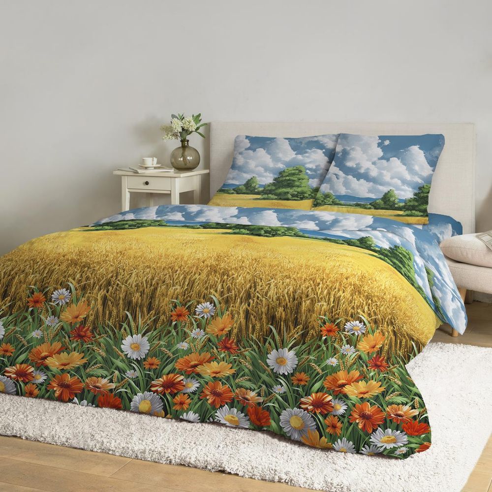 1,5-спальное постельное белье из бязи ГОСТ плотностью ткани 140 г/м2. Это очень плотная, имеющая длительный срок службы ткань, рисунки на которой смотрятся четко и красиво. Ну и, конечно, у этой ткани... Показать описание абсолютно натуральный состав, хлопок 100 %, она очень комфортна, экологична, гипоаллергенная, что способствует вашему полноценному отдыху! В комплекте: пододеяльник размером 150*215 см с прорезью в нижнем шве, простыня размером 150 * 220 см, две наволочки размером 70 * 70 см с глубоким клапаном (не менее 25 см). Мы используем только натуральные материалы и передовые технологии, а наши опытные специалисты обеспечивают качественный пошив. Наши изделия произведены в Ивановской области, имеют сертификацию качества "ГОСТ 31307-2005", а также зарегистрированы в государственной системе маркировки "Честный знак". Обращаем внимание на то, что наволочки кроятся из разных мест принта, поэтому расположение рисунка может отличаться от представленного на фото.
