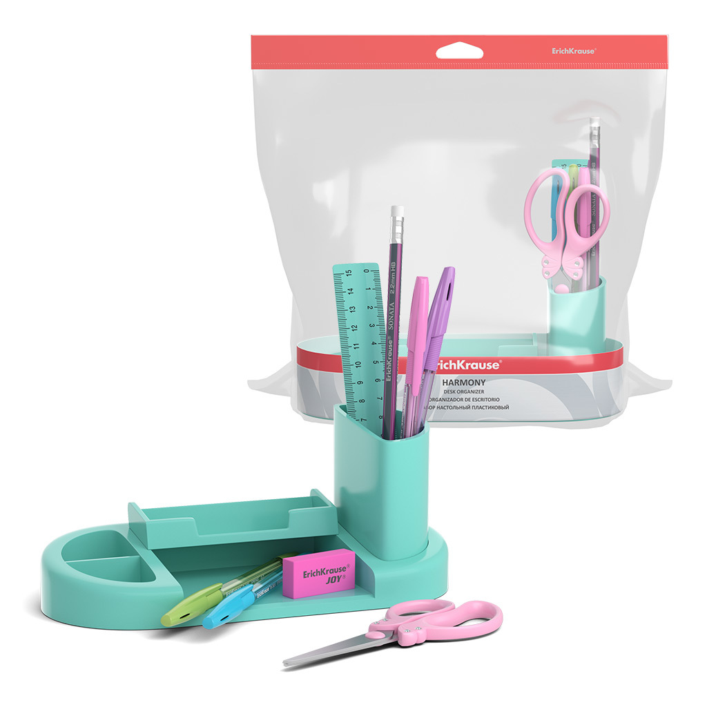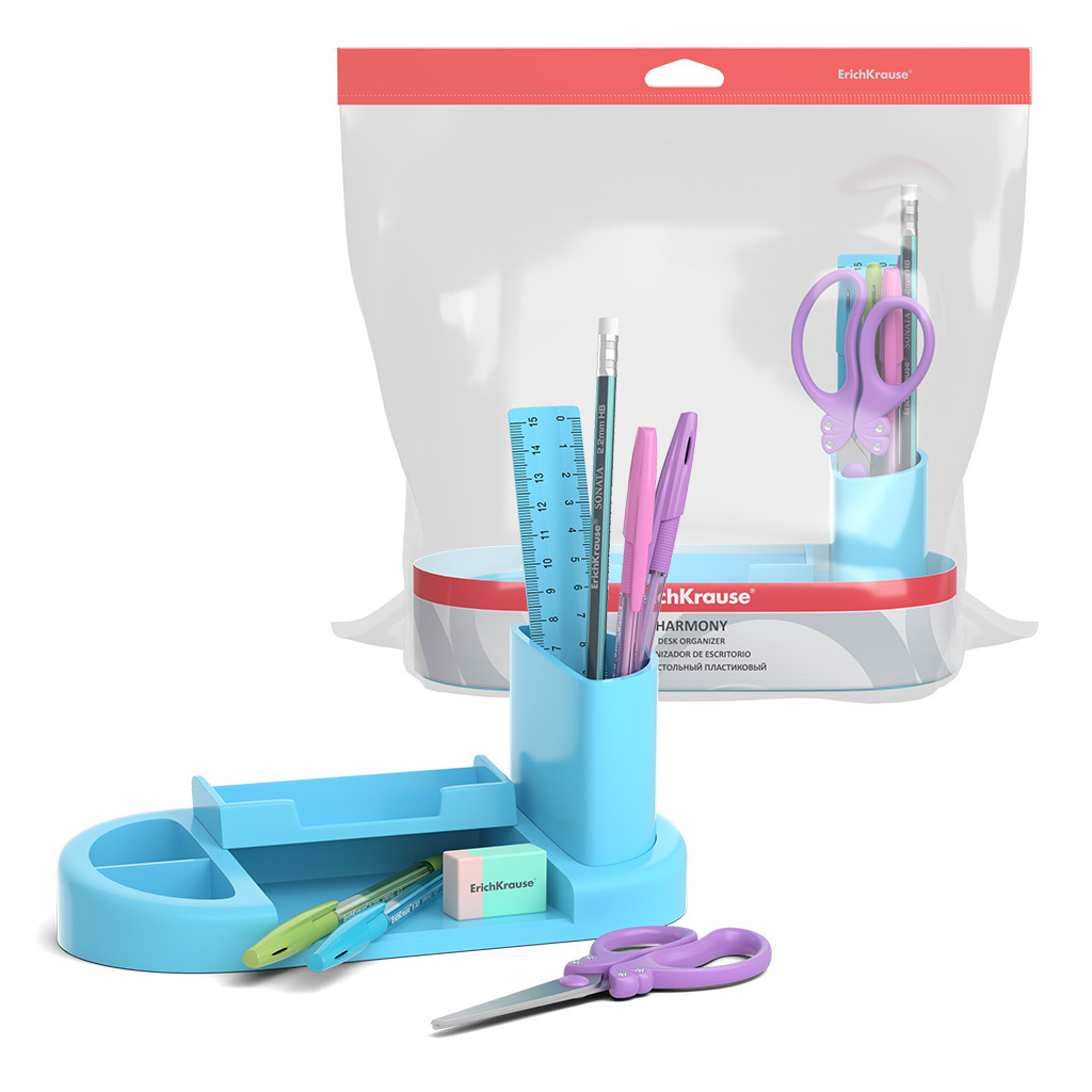 АКЦИЯ. Набор настольный пластиковый ErichKrause® Harmony, Pastel, голубой Вопросы по товару