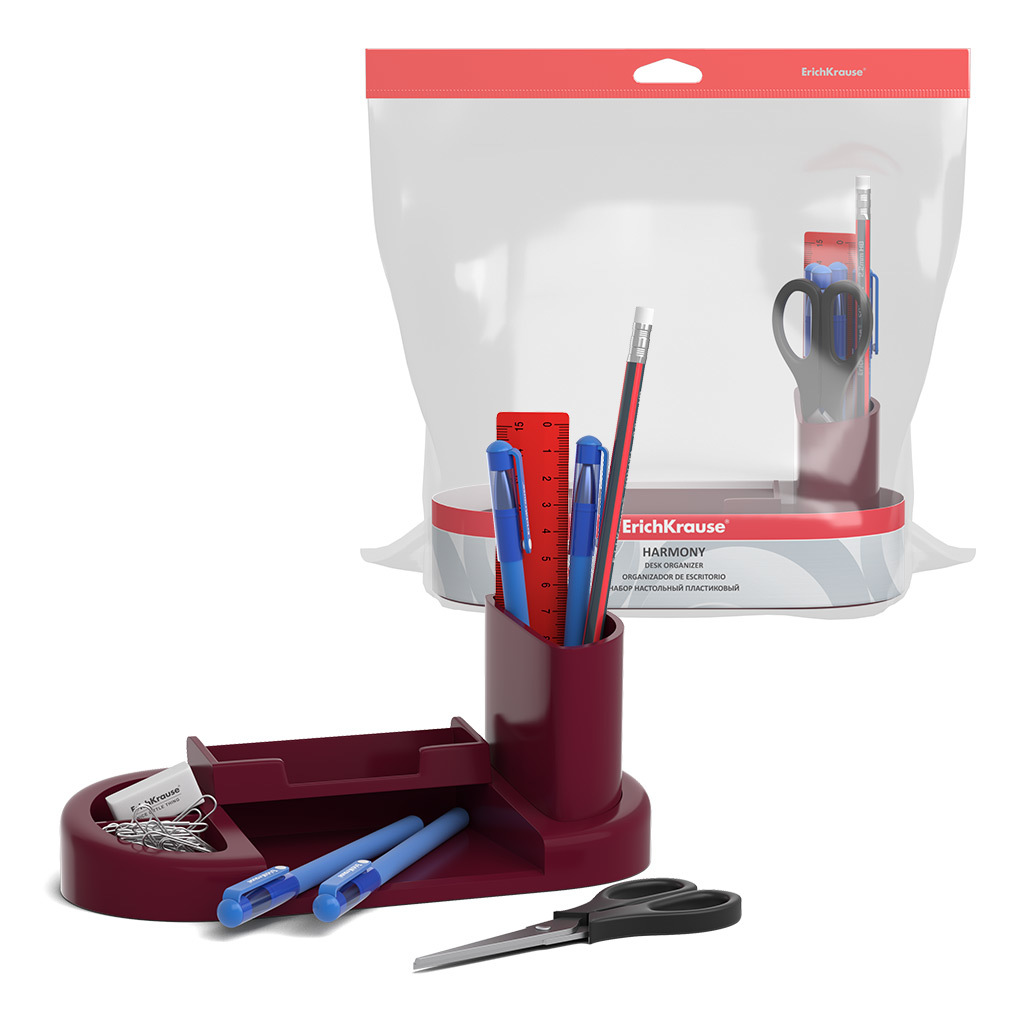 АКЦИЯ. Набор настольный пластиковый ErichKrause® Harmony, Marsala, красный Вопросы по товару
