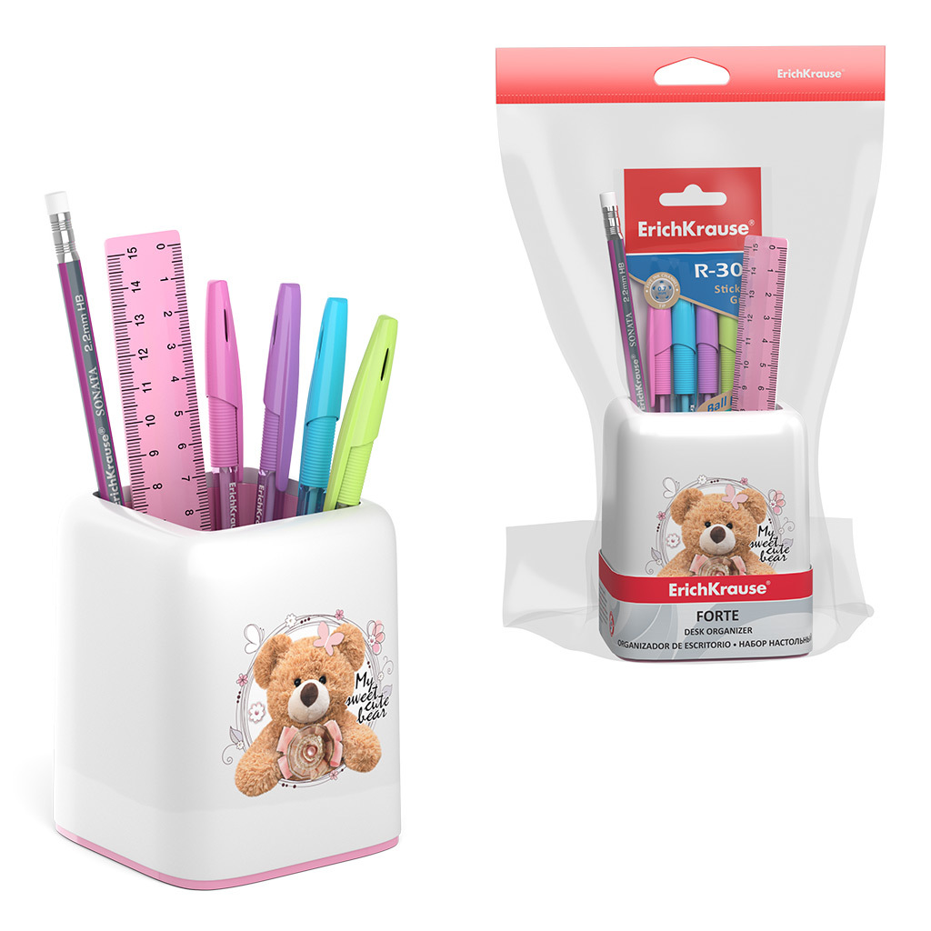 АКЦИЯ. Набор настольный пластиковый ErichKrause® Forte, Teddy Bear, белый с розовой вставкой Вопросы по товару