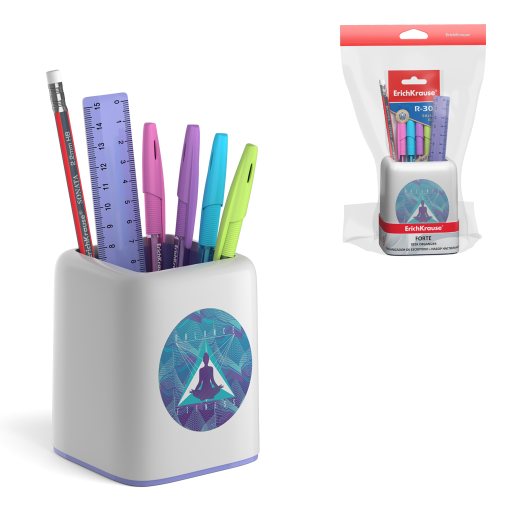 АКЦИЯ. Набор настольный пластиковый ErichKrause® Forte, Meditation, белый с фиолетовой вставкой Вопросы по товару