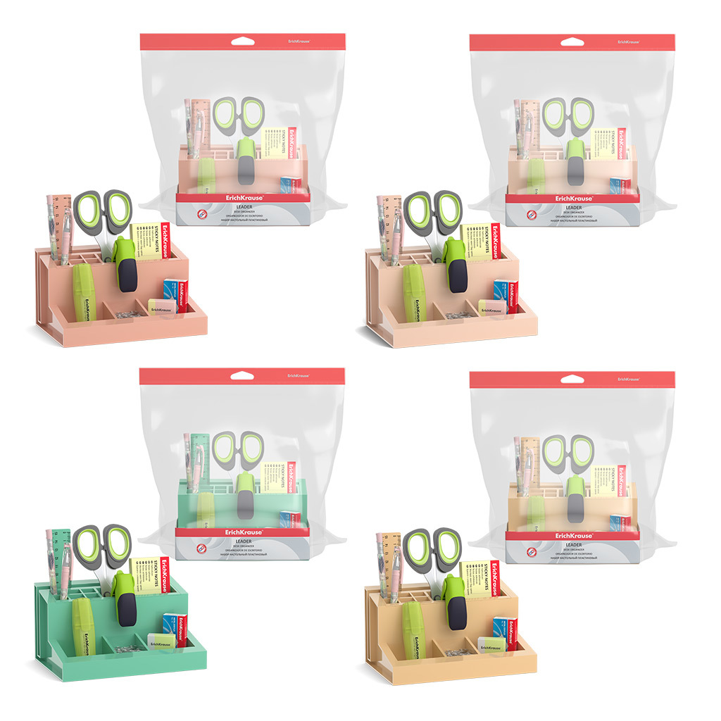 АКЦИЯ. Набор настольный пластиковый ErichKrause® Leader, Powder, ассорти из 4 цветов