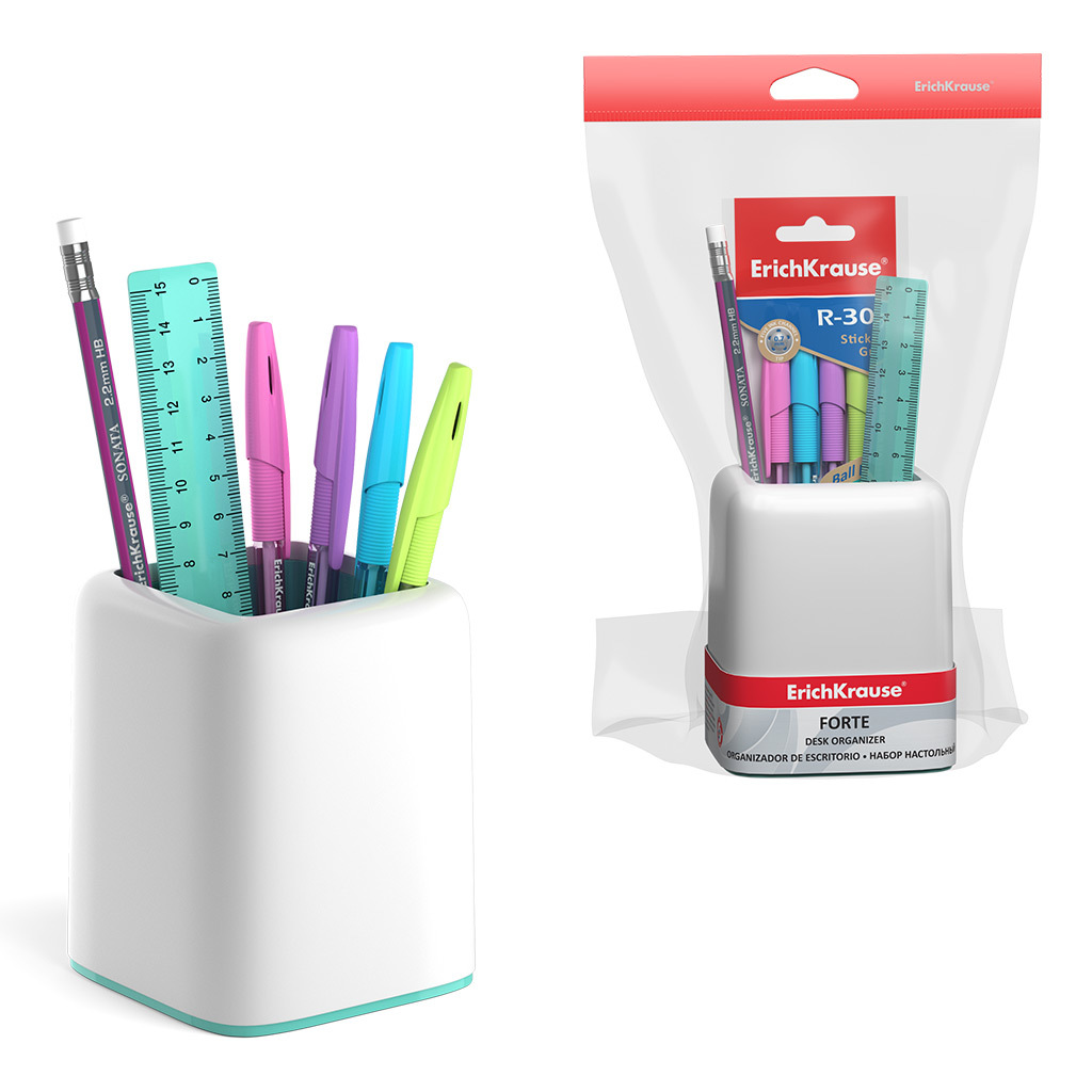 АКЦИЯ. Набор настольный пластиковый ErichKrause® Forte, Pastel Mint, белый с мятной вставкой Вопросы по товару