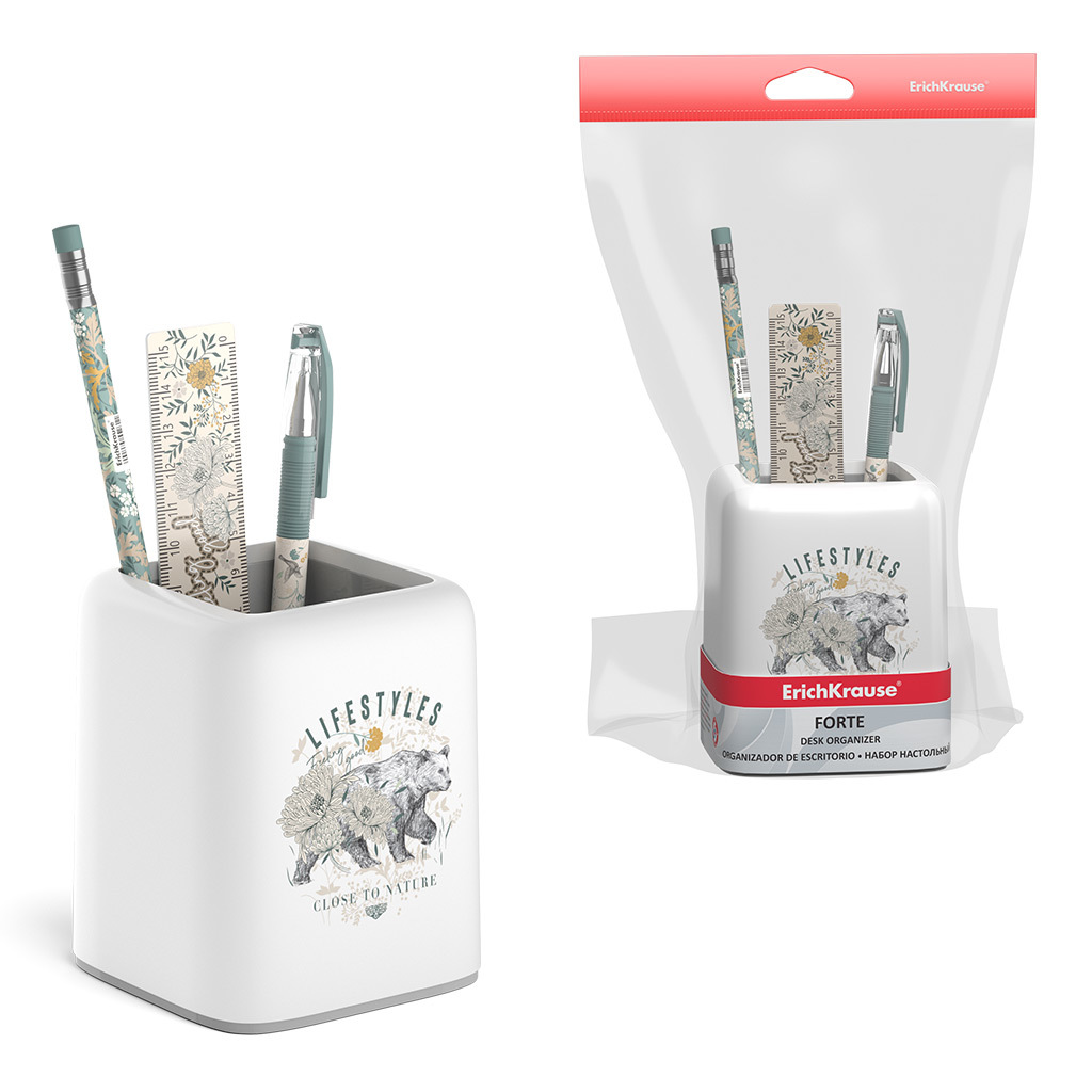 АКЦИЯ. Набор настольный пластиковый ErichKrause® Forte, Natural Life, белый с серой вставкой Вопросы по товару