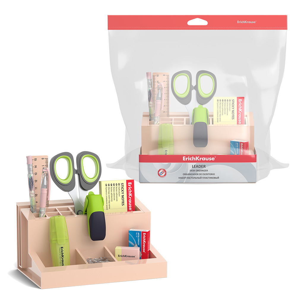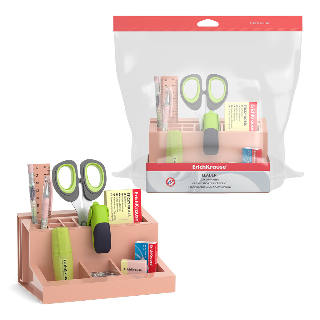 АКЦИЯ. Набор настольный пластиковый ErichKrause® Leader, Powder, персиковый Вопросы по товару