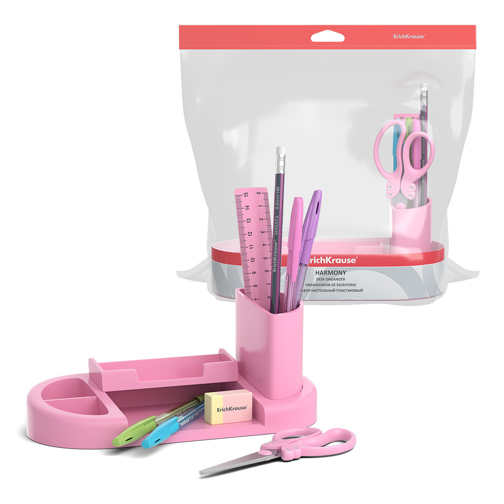 АКЦИЯ. Набор настольный пластиковый ErichKrause® Harmony, Pastel, розовый Вопросы по товару