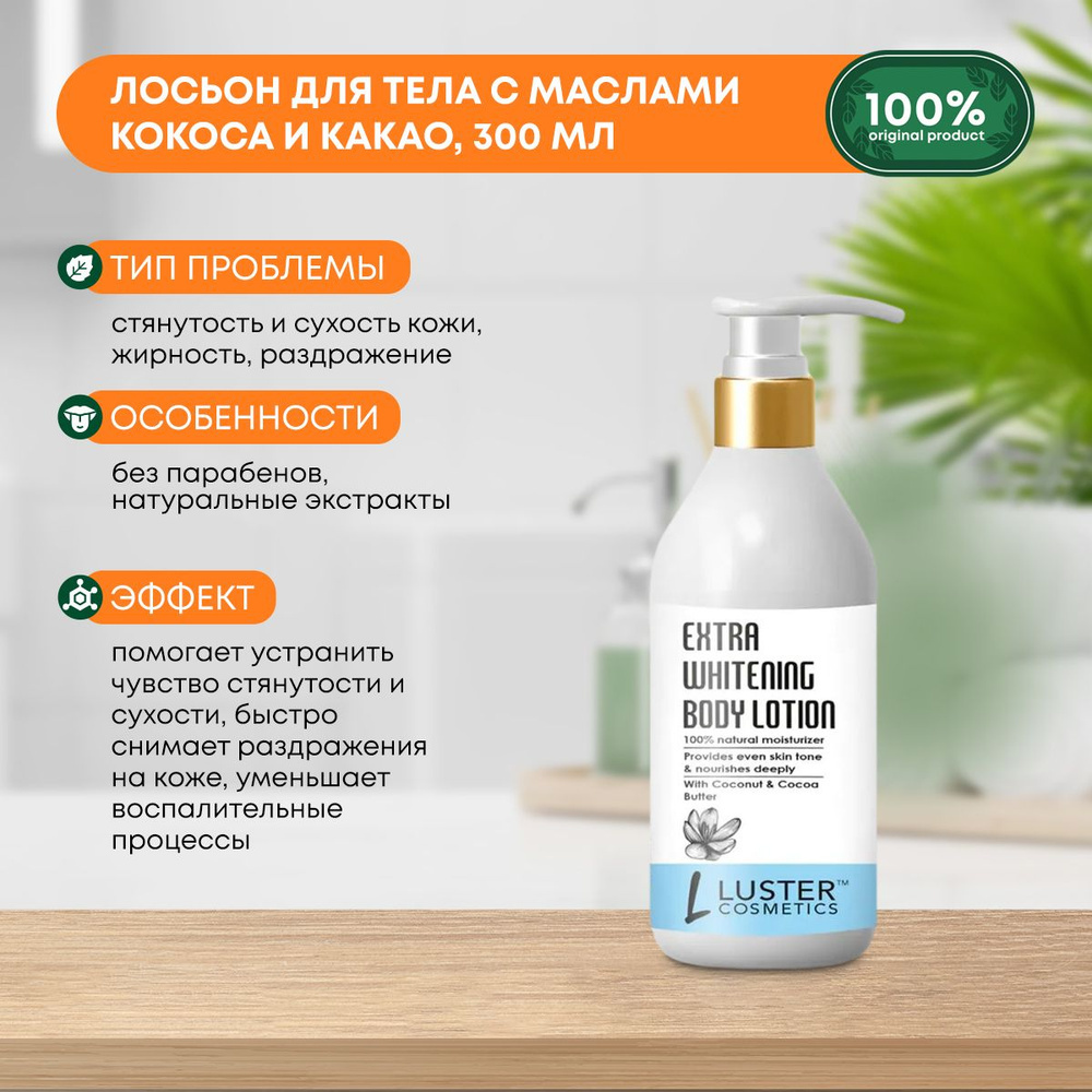 LUSTER Extra Whiitening Body Lotion Питательный лосьон для тела с маслами кокоса и какао 300млВопросы по товару