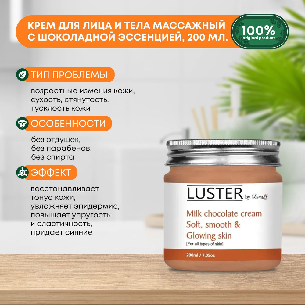 LUSTER Milk Chocolate Massage Cream Массажный крем для лица и тела на основе шоколадной эссенции 200млВопросы по товару
