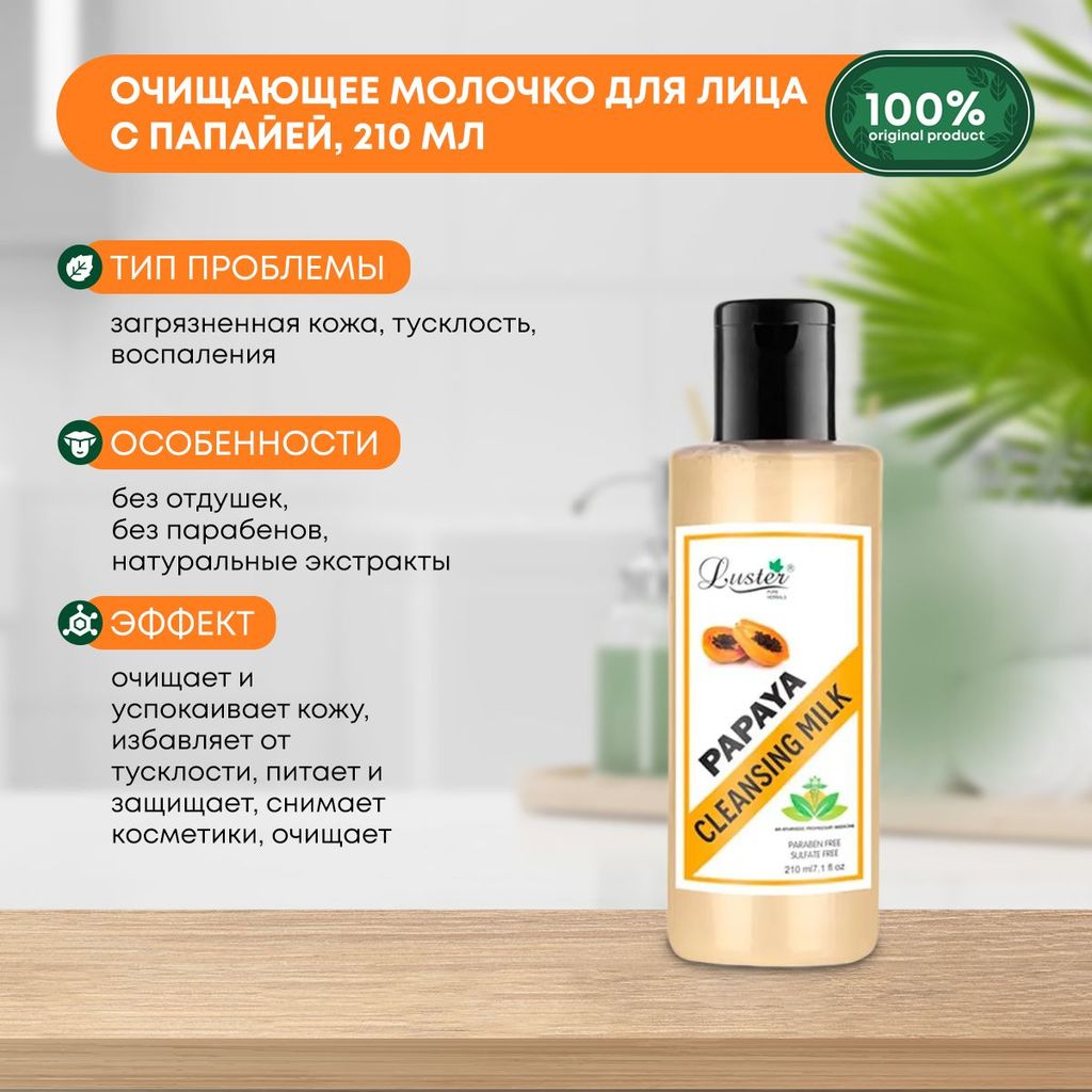 LUSTER Papaya Ultimate Cleansing Milk Очищающее молочко для лица с экстрактом папайи 210млВопросы по товару