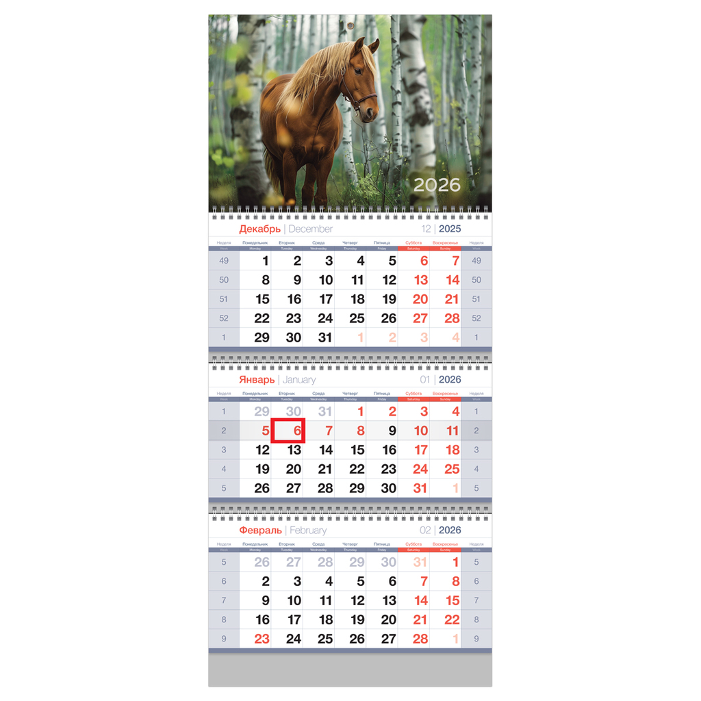 Календарь квартальный 3 бл. на 3 гр., 295*700 мм BG Standard Берёзовая роща, с бегунком, 2026г., 380974 Вопросы по товару