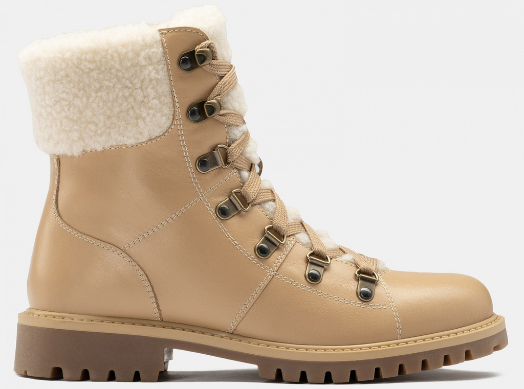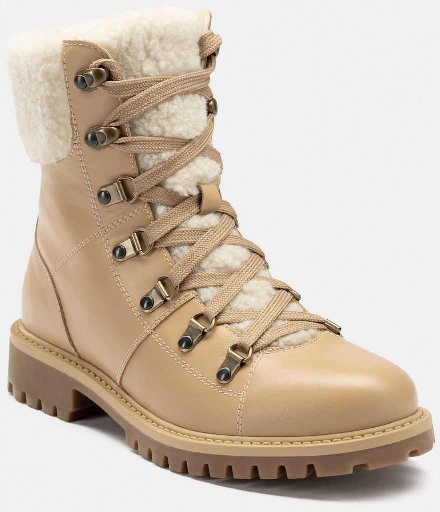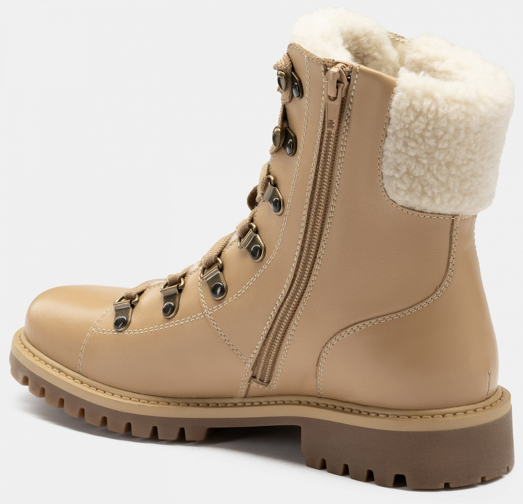 Больше картинок (информации) и таблица размеров на странице. Зимние женские ботинки ASPEN выполнены в бежевом цвете из натуральной кожи с терморегулирующими и водонепроницаемыми свойствами. Шнуровка с прочными петлями и крючками сверху обеспечивает плотную посадку. Подклад и стелька созданы из натуральной плотной шерсти, поэтому данная модель подходит для длительных прогулок в холодные зимние дни. Ботинки отлично смотрятся со спортивными куртками, утепленными пальто и шубами. Внутренний материал: Мех (шерсть) Материал верха: Кожа Материал подклада: Мех (шерсть) Материал подошвы: ТЭП