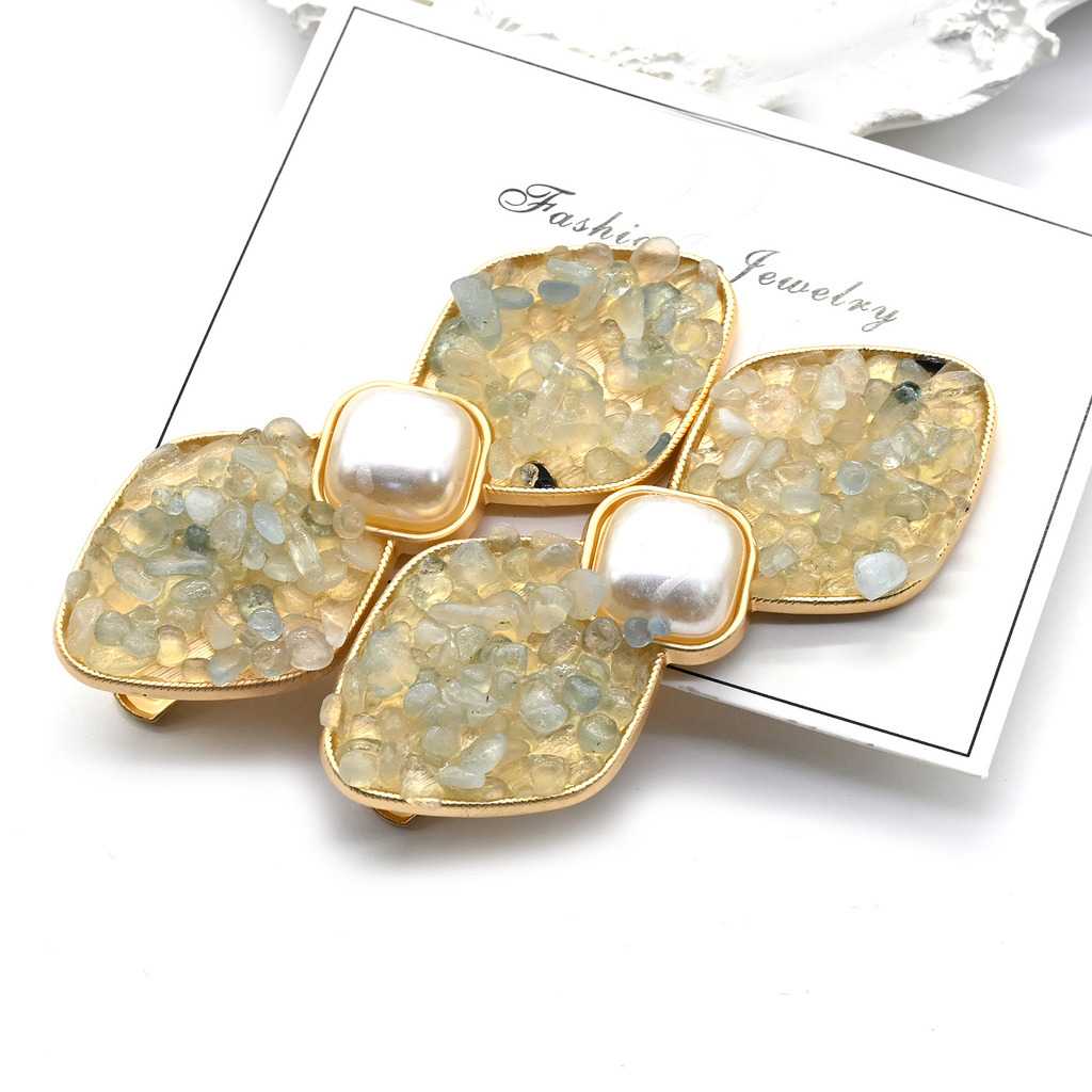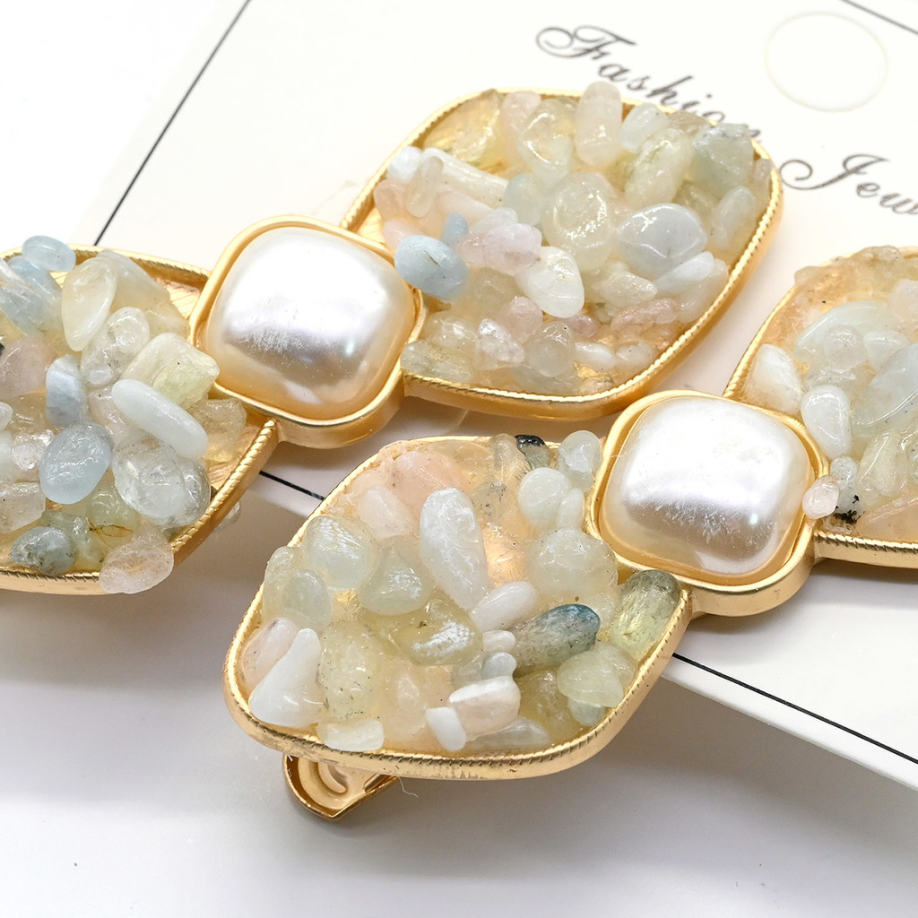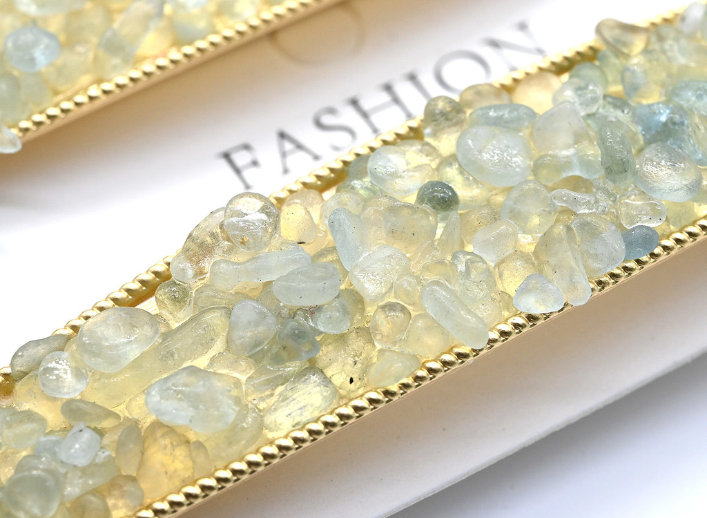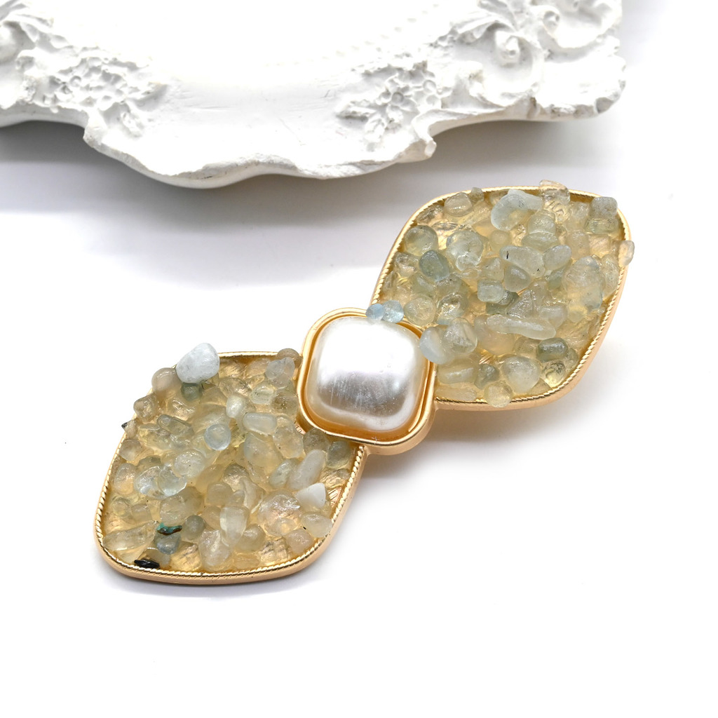 Материал: Берилл Натуральность: Натуральный камень Месторождение: Бразилия •Заколка зажим с крошкой из натурального берилла и майоркой. •Металлический зажим для волос – незаменимый аксессуар для созда... Показать описаниения стильного образа! •Зажим выполнен из прочного материала, обеспечивающего надёжную фиксацию даже объёмной причёски, позволяя создавать различные вариации укладок каждый день. •Подходит как для повседневного применения, так и для вечернего выхода. Прочный механизм гарантирует длительный срок эксплуатации без потери функциональности. •Габариты заколки: длина 6,5см, ширина 2,5см. •Габарит заколки ± 1мм. •Цена за 1 шт.
